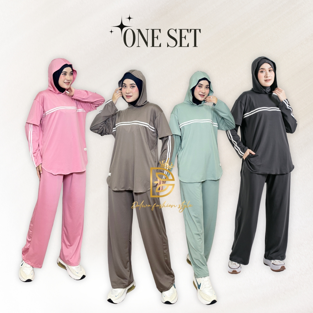 One Set Hoodie Sporty Bahan Jersey Premium Setelan Olahraga Wanita Setelan Olahraga Badminton Senam Lari Bersepeda