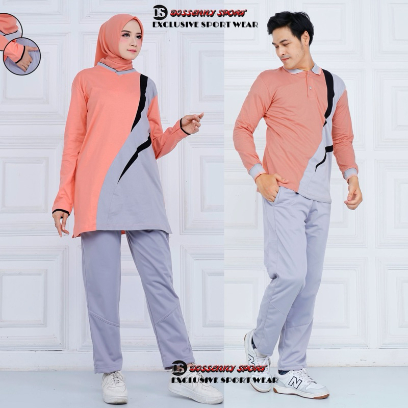 TERBARU COUPLE Stelan Kaos Training Senam Olahraga wanita model muslim Setelan Baju olahraga muslim tunik Dan kaos kerah lengan panjang