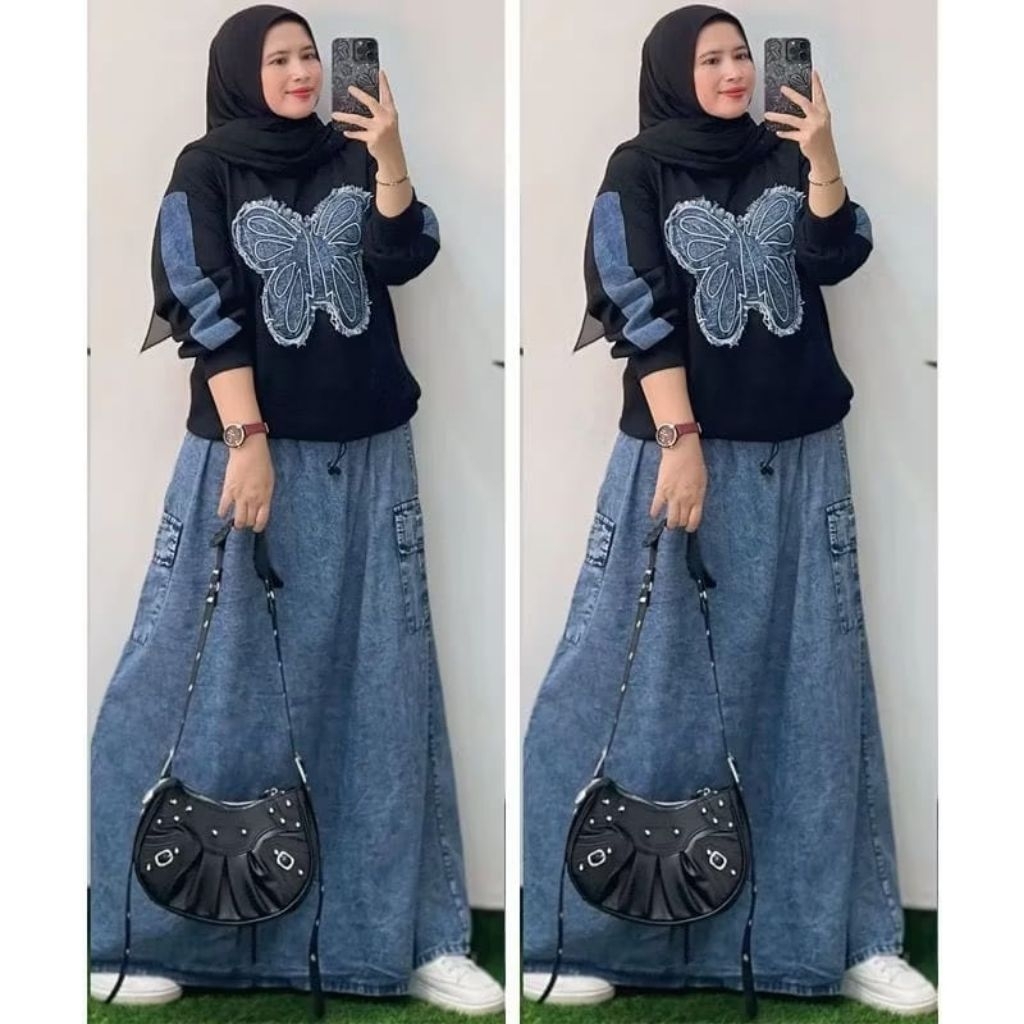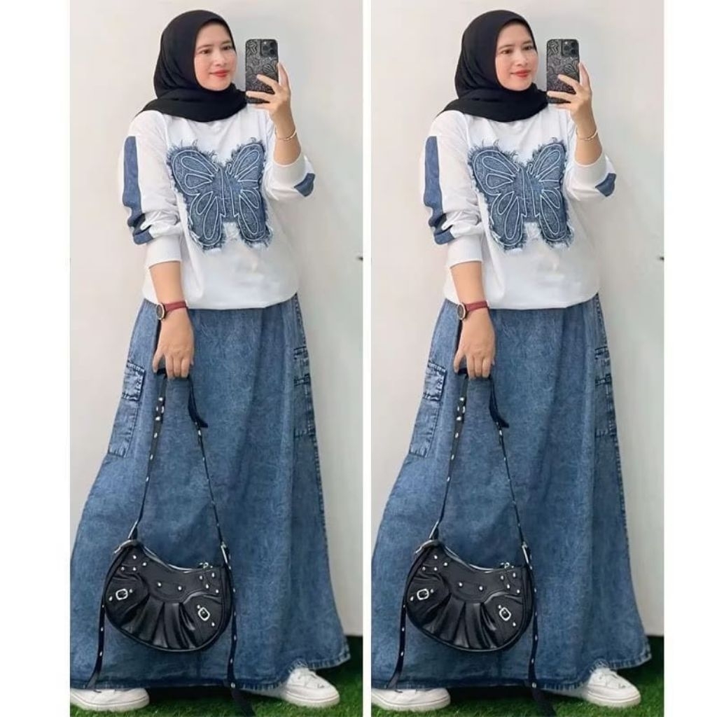 SETELAN ROK KAOS COMBAD ROK JEANS DANO SET TERBARU
