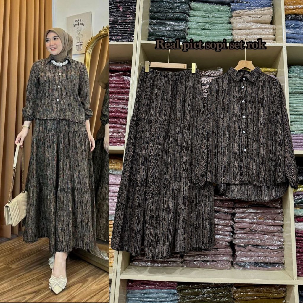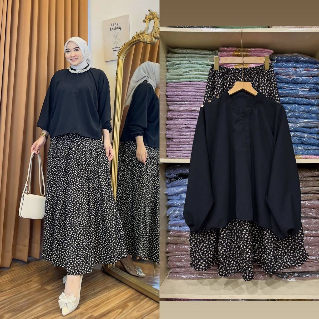 Citra Pakis Fashion - Sophia Set Rok Muslimah Bahan Rayon diamond Premium LD 110 cm Setelan Wanita Harian Masa Kini Motif Kekinian Terbaru