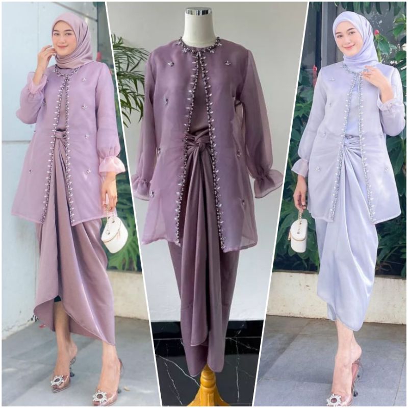 Oneset Jemma Organza Premium Outfit Kondangan Setelan Rok Lilit