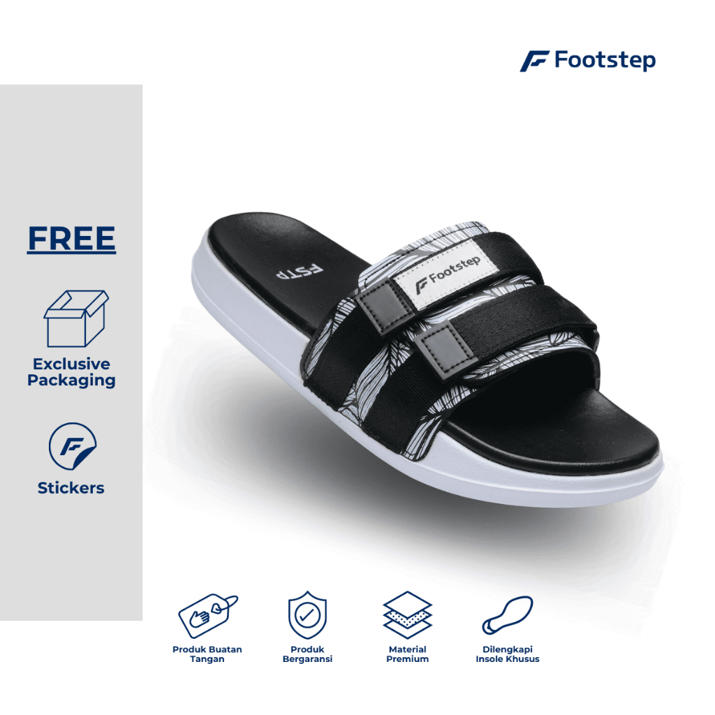 Footstep Footwear Sandal Pria Slide Nifty Black White Original Sandal