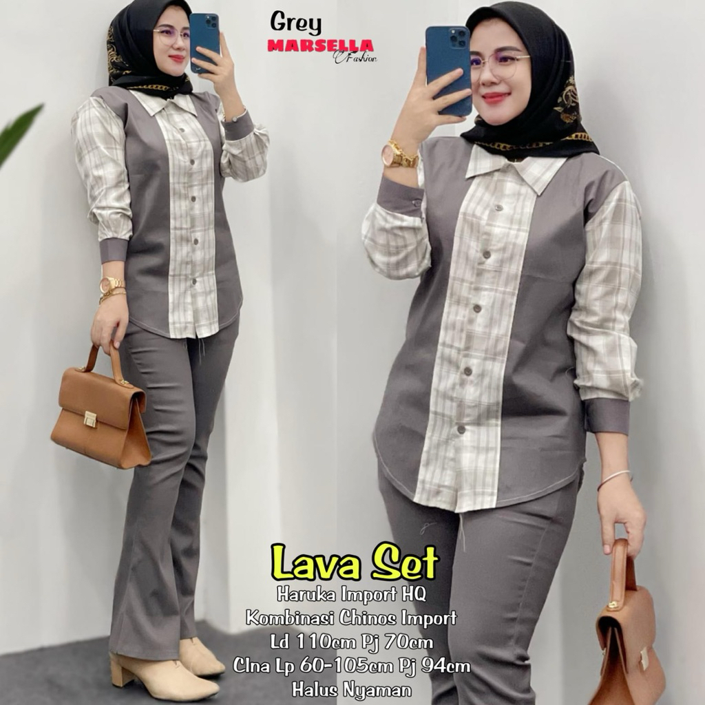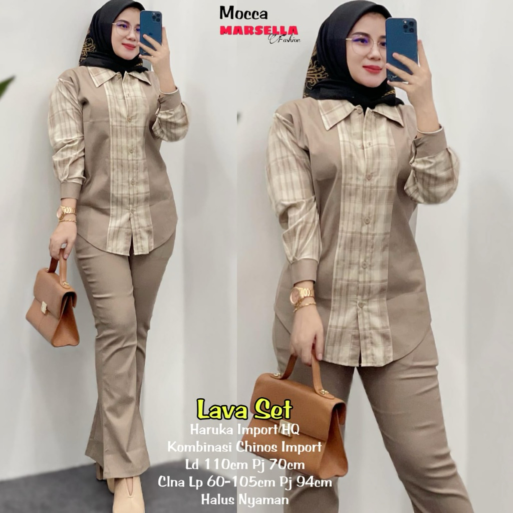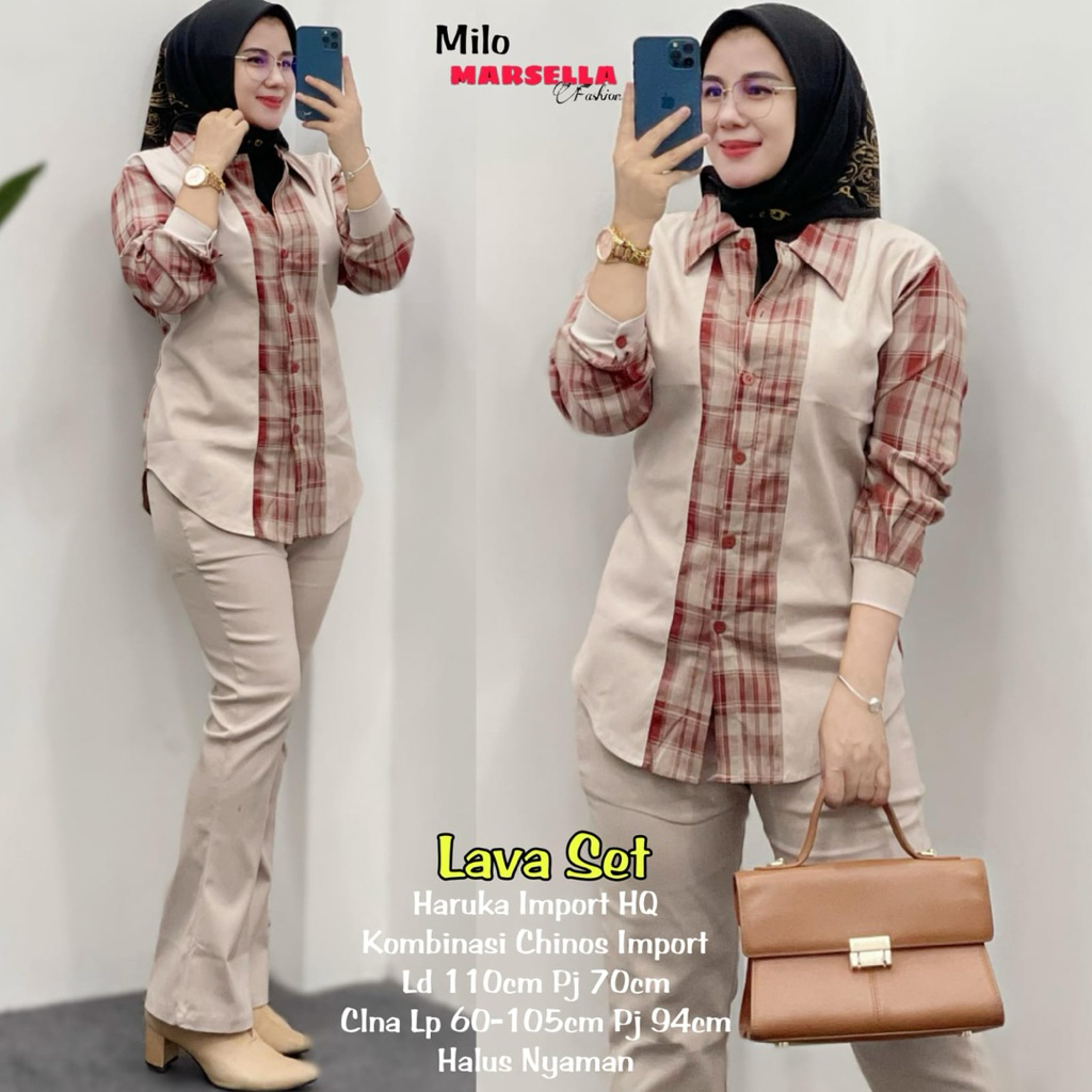 Alda Set Setelan Wanita Atasan Kemeja Katun Import + Celana Chinos Premium