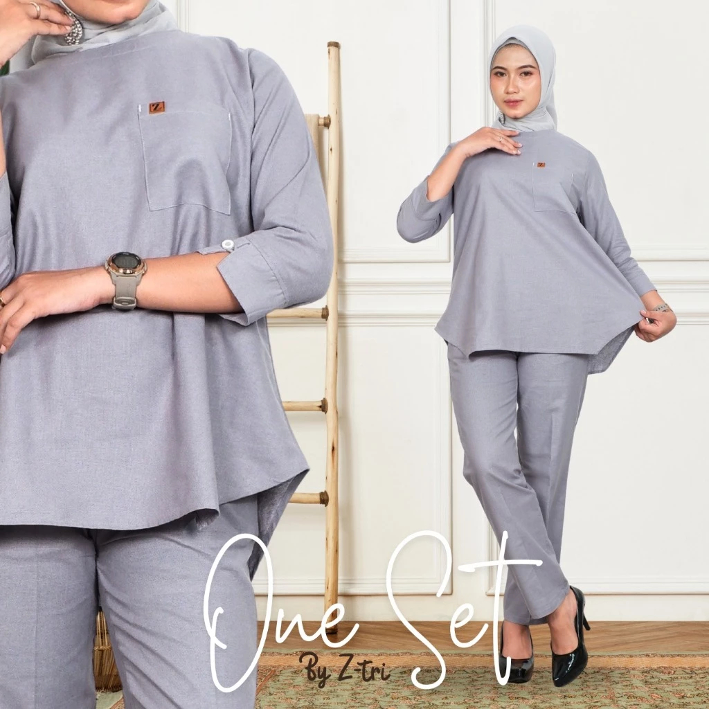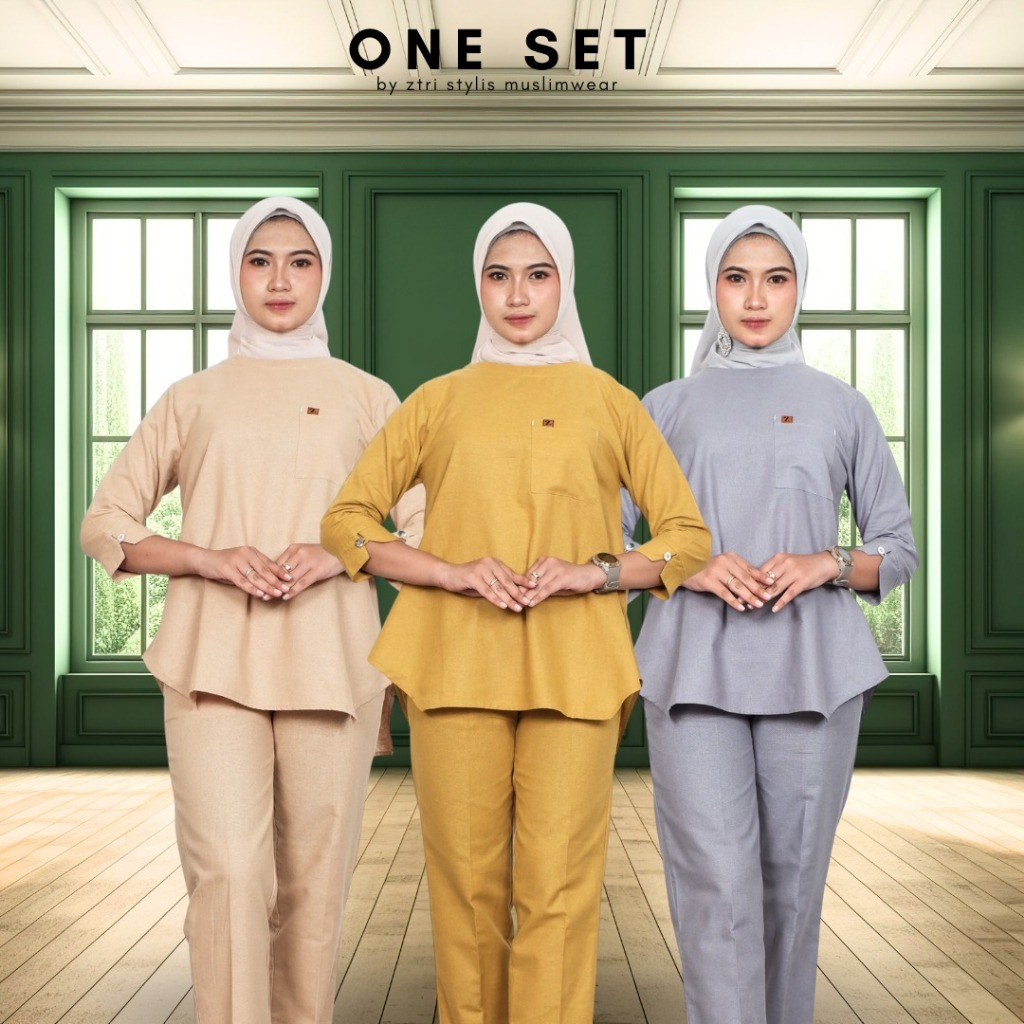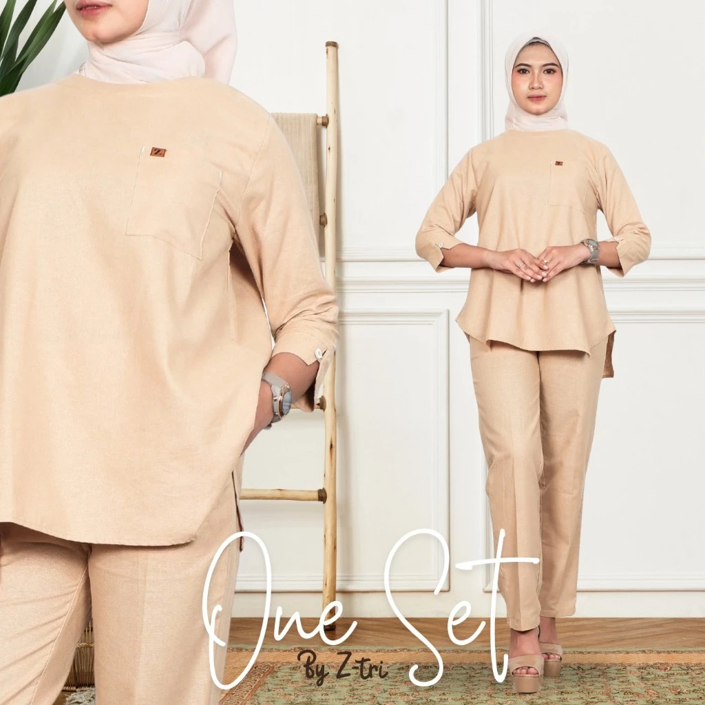 One Set Wanita Kekinian Premium – Setelan Casual Linen Rami Katun Adem Outfit Elegan