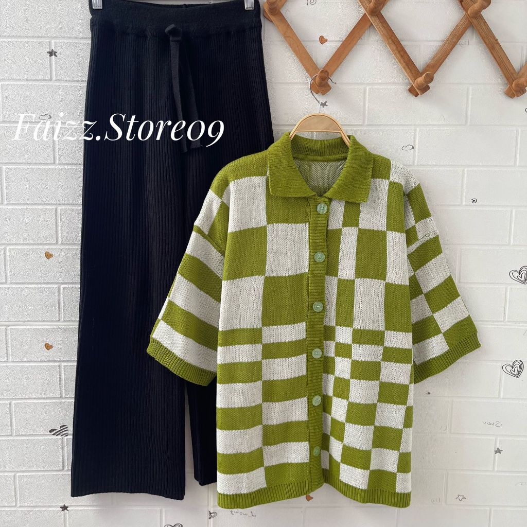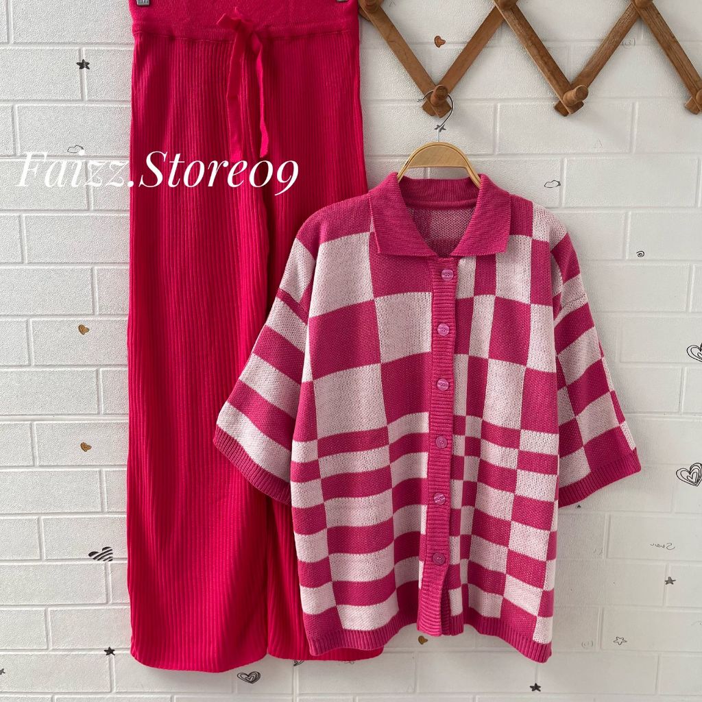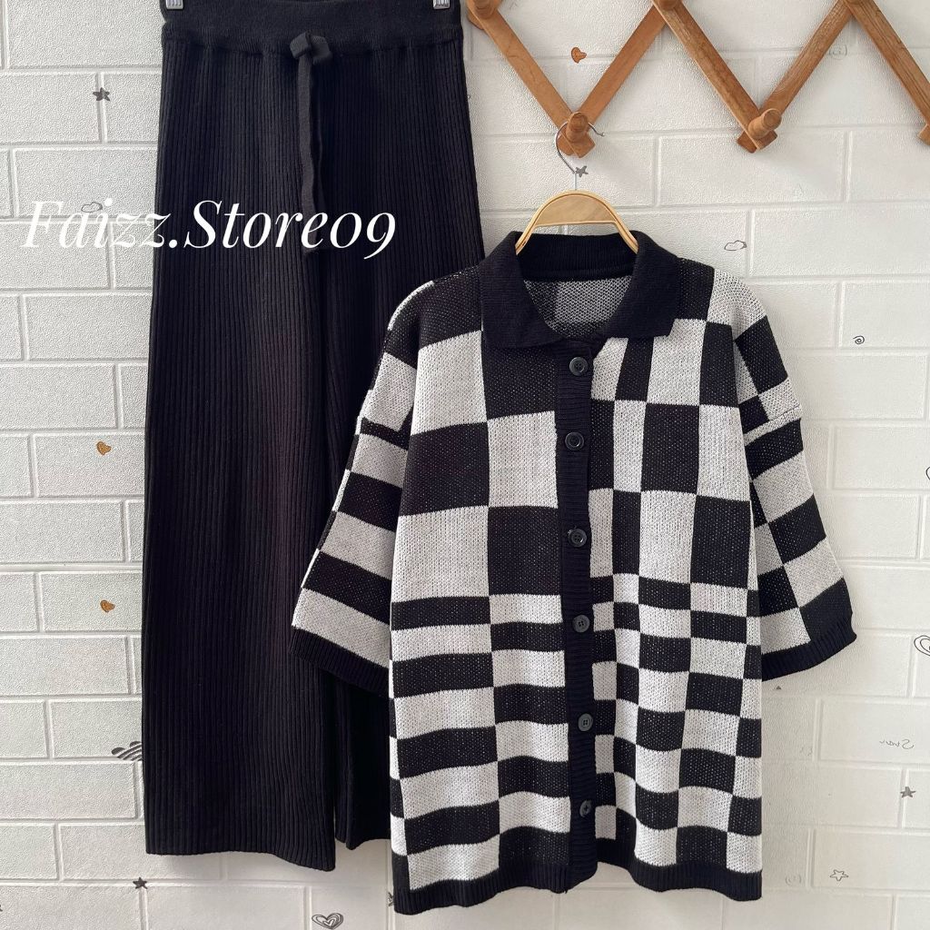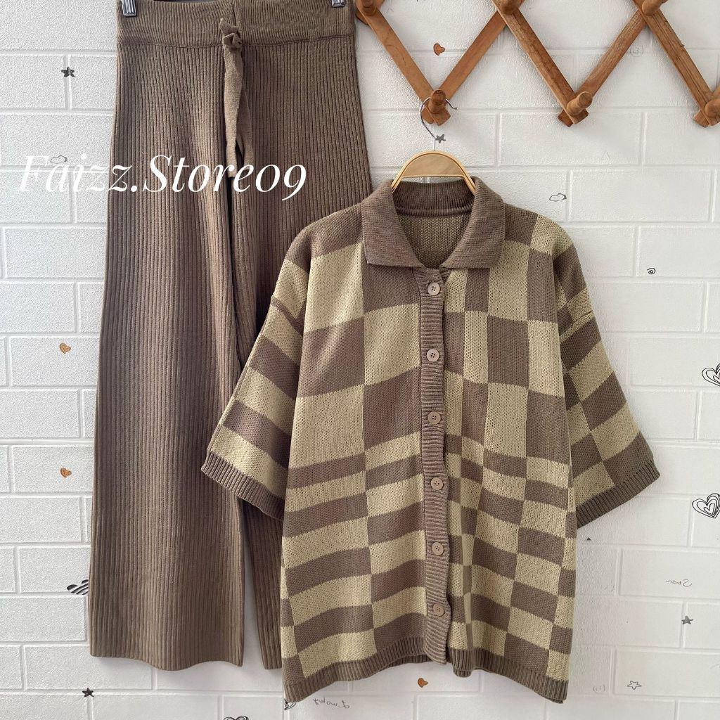 Oneset Knitwear Outfit Fuji Setelan Celana Kulot Rajut Wanita Premium Kekinian