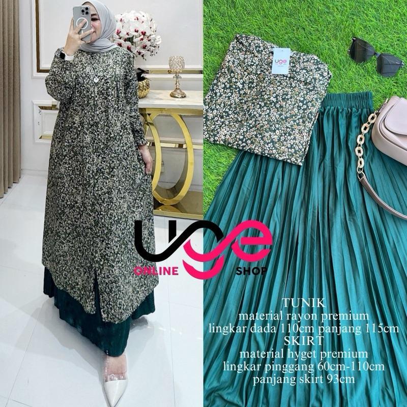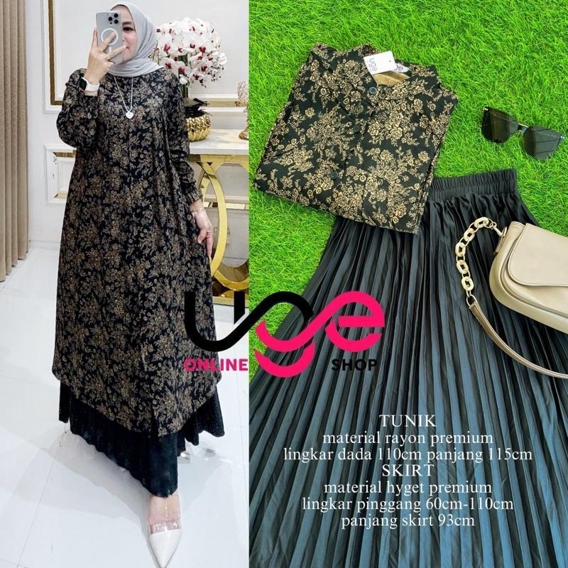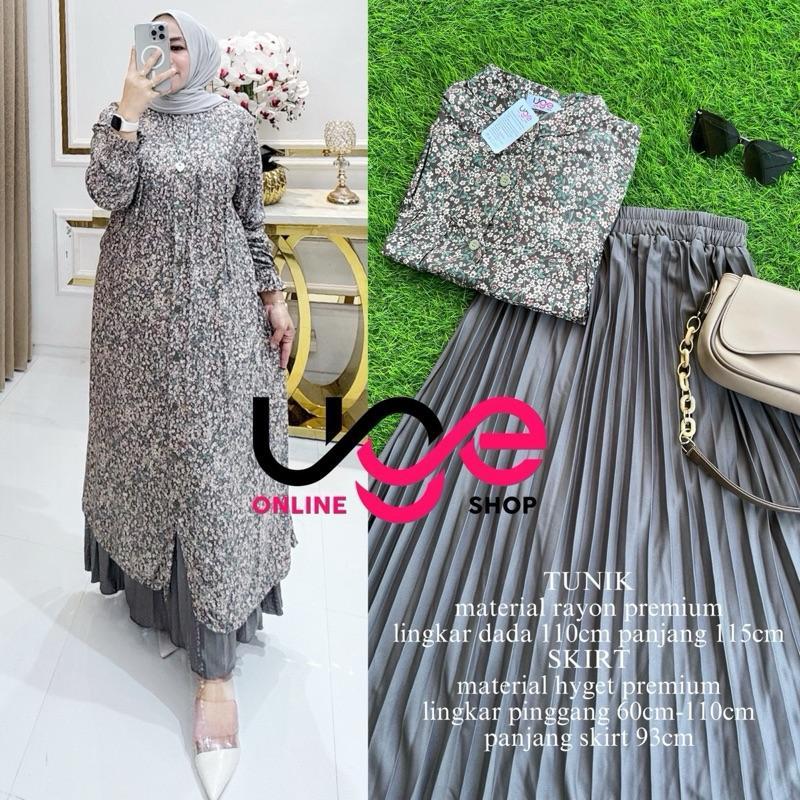One set rok plisket premium by UGE rayon motif tunik busui kancing depan Muslim Wanita Setelan Baju