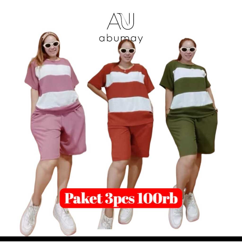 DISKON FANTASTIS 3 PCS HANYA 100 RIBU SETELAN BAJU LENGAN PENDEK&HOTPANT