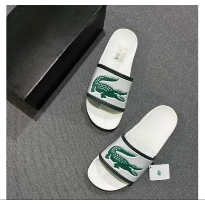 GRATIS ONGKIR SENDAL SLOP CASUAL LACOST PREMIUM MOTIF PRIA FREE BOX