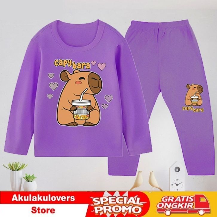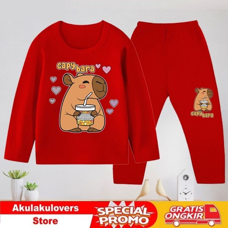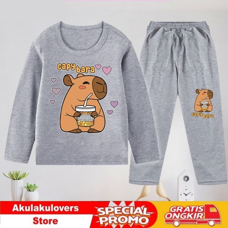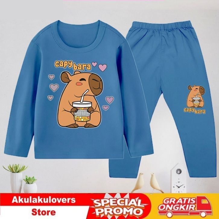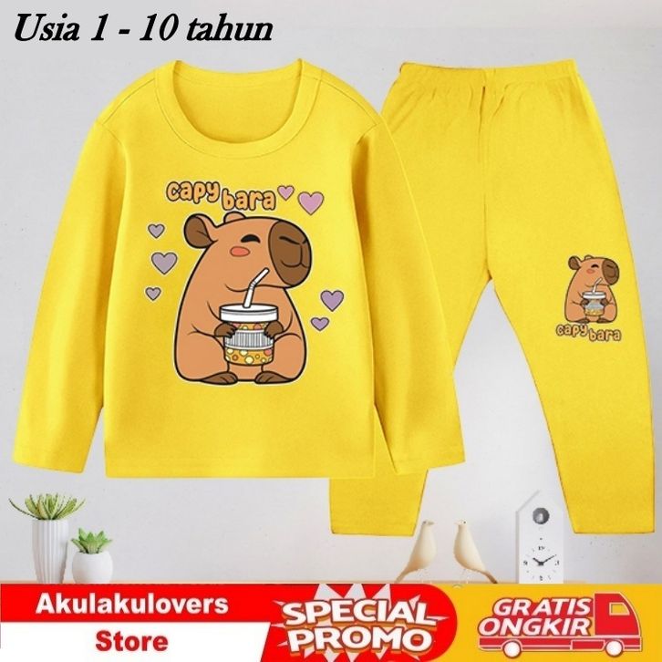 [PROMO] Baju Tidur Anak / Baju Anak / Piyama Anak/ Setelan Panjang Anak Cewek dan Cowok usia 1-10 tahun - Capybara_19-75