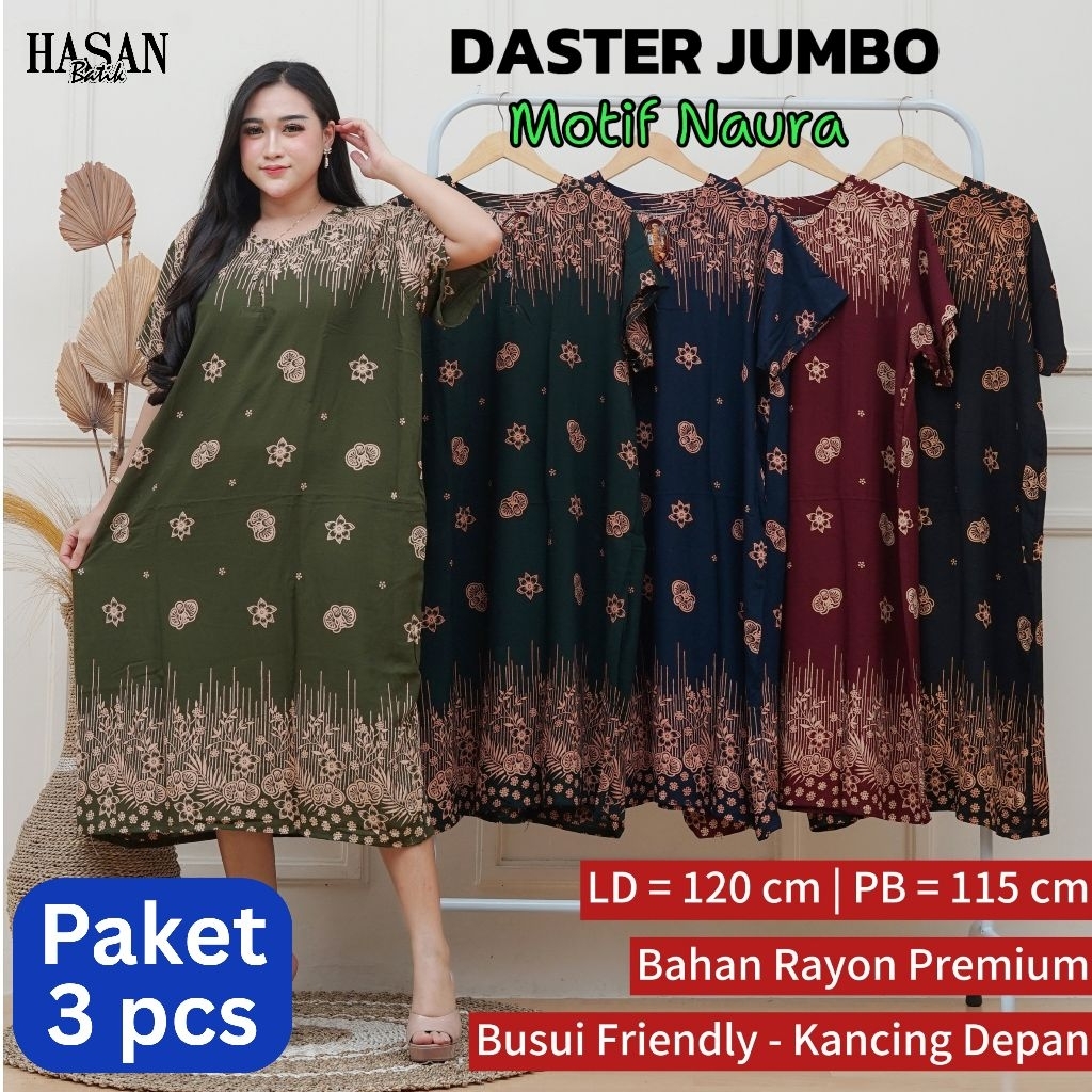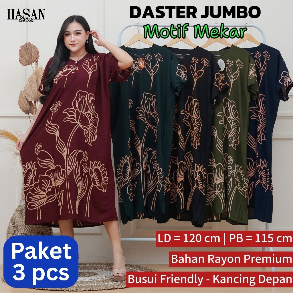 Daster jumbo 3 pcs motif bunga rayon premium Baju tidur wanita lengan pendek korea style