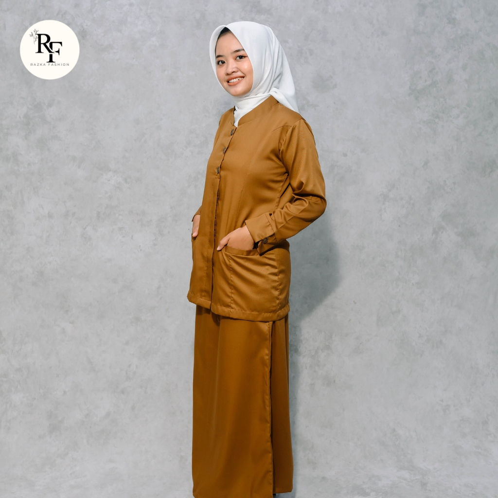 Setelan Seragam Dinas PNSP3K Pemda Wanita Khaki Tua Model Saku Bawah Terbaru 2025