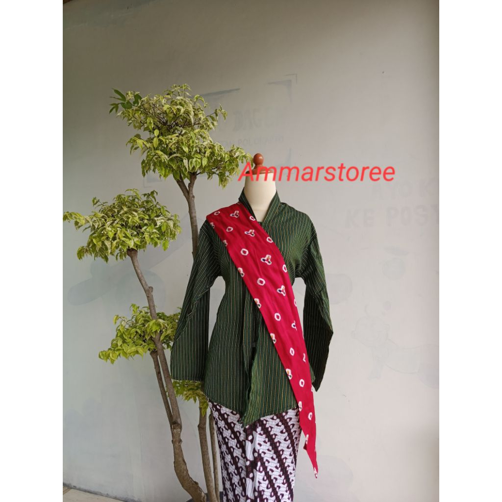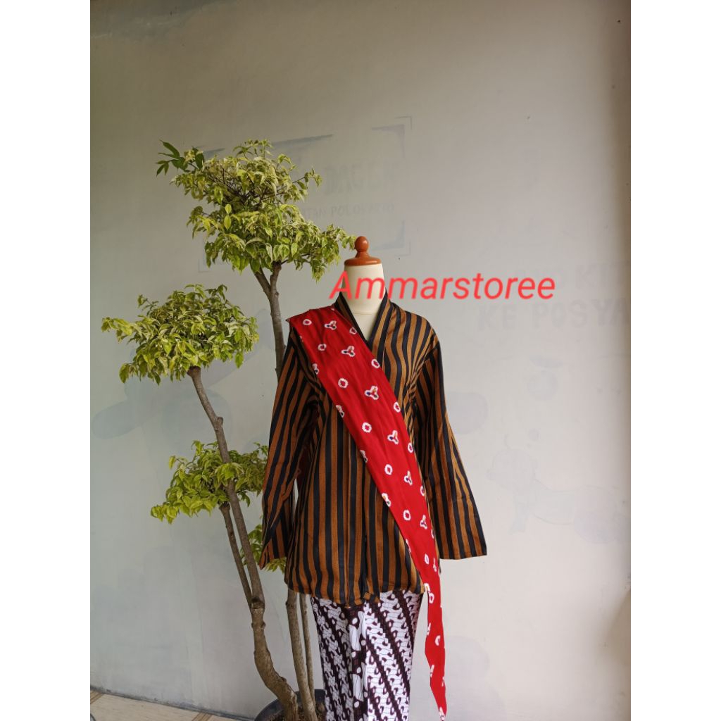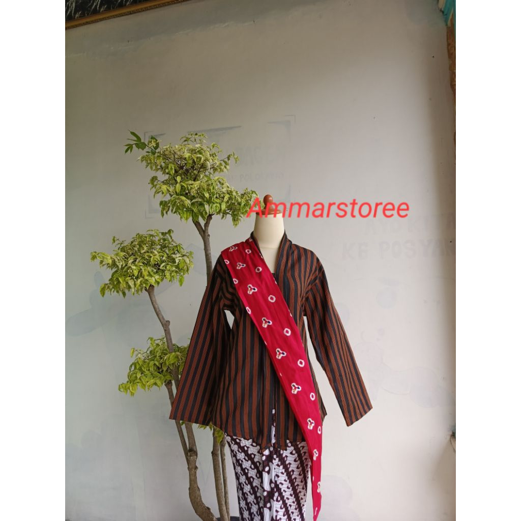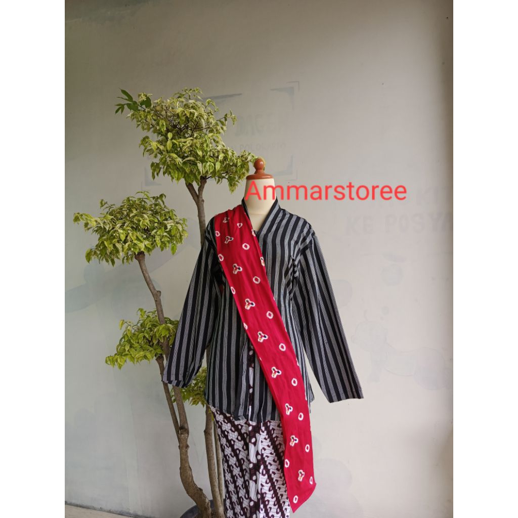 Setelan Lurik Kartini Dewasa Free Selendang Merah