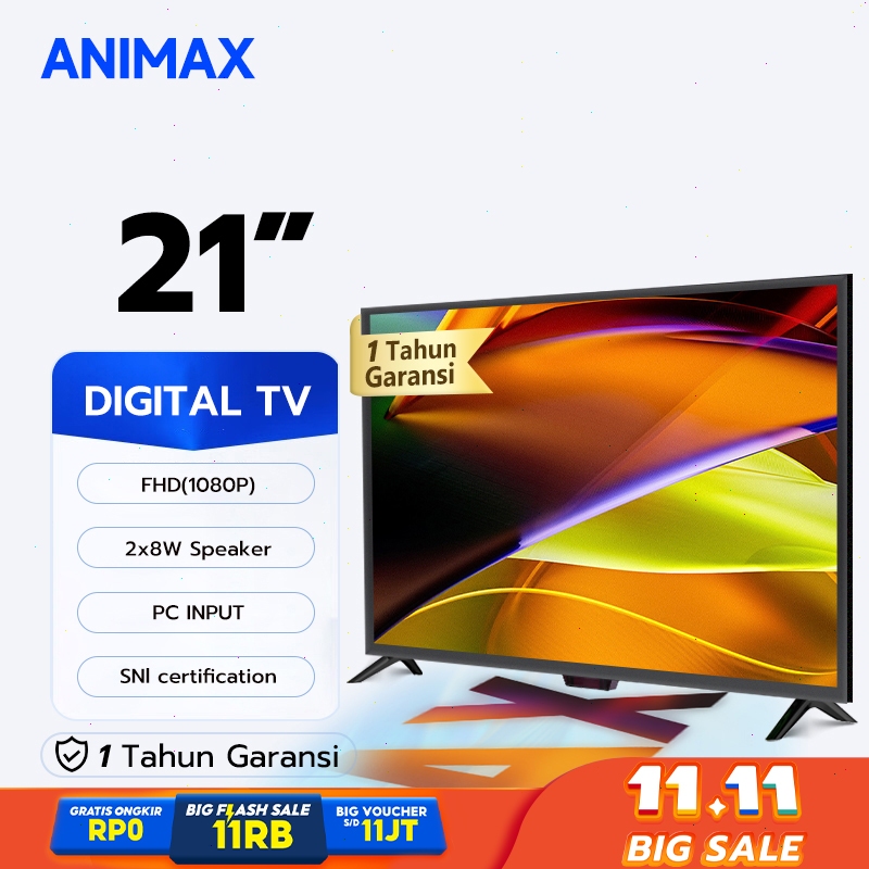 Animax TV LED Digital 24 inch TV LED 21 inch 27 inch 30 inch televisi LED FHD 1080 1 Tahun