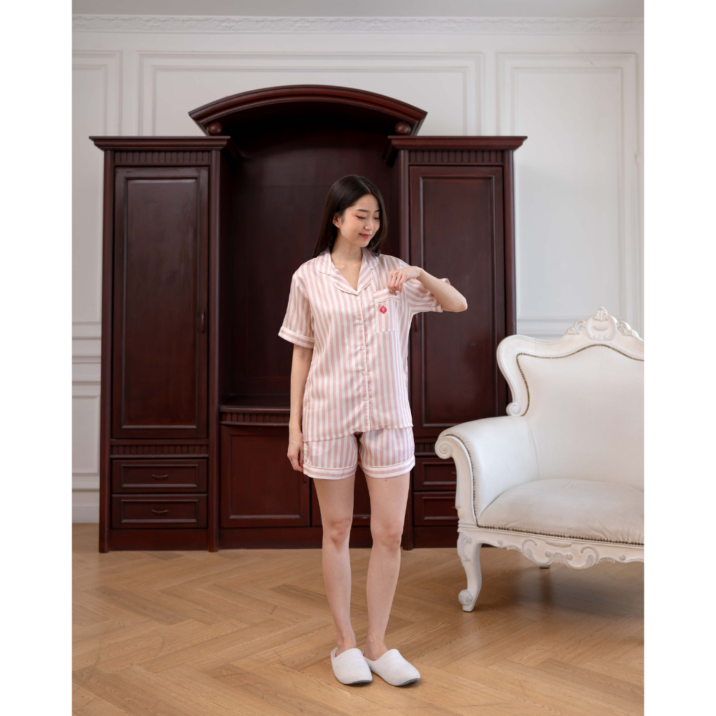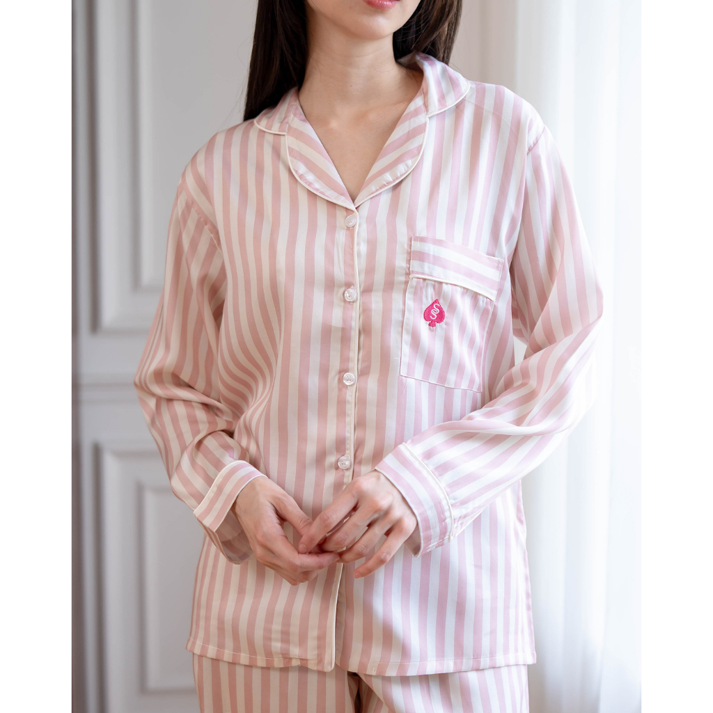 Surrell SleepwearSpade CollectionORGANIC SILK Tencel Pajamas Stripes Set Piyama Wanita Lengan Panjang Long Sleeve Set