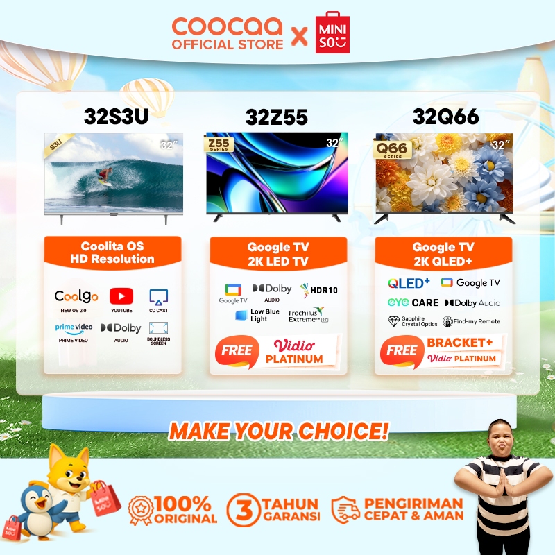 COOCAA 32 inch S3U Smart TV - Digital TV - Dolby Audio - Yube - Mirroring - Flick Free - Boundless - WIFI - HD - USB/AV/LAN - OS Coolita (COOCAA 32S3U)
