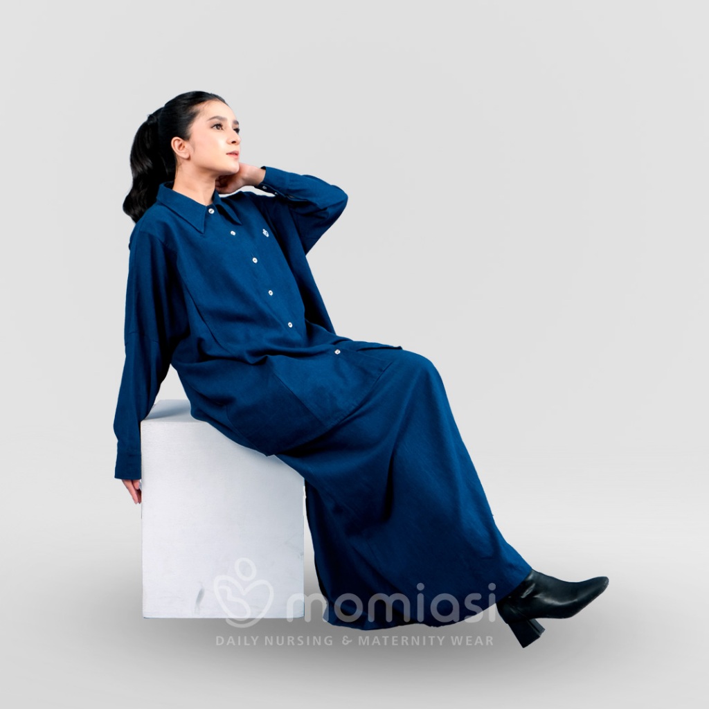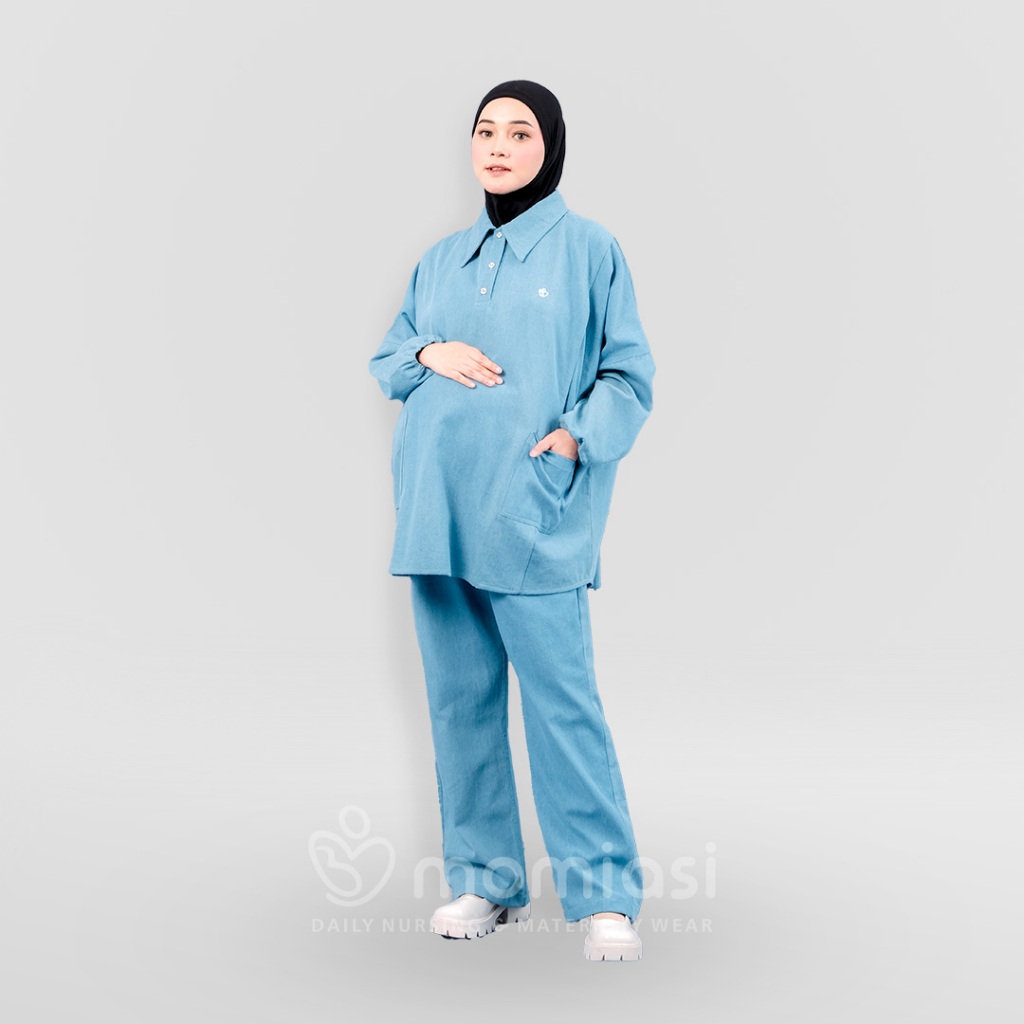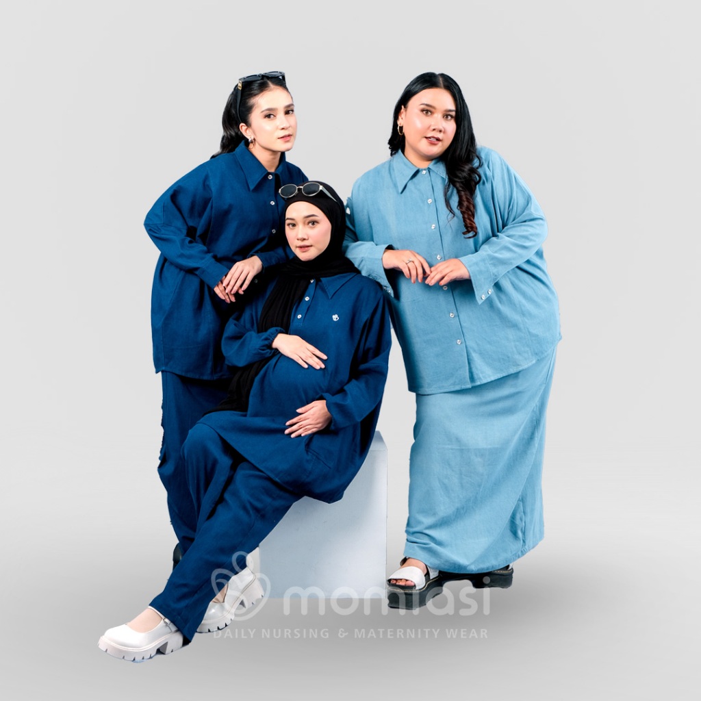 Momiasi - Bianca - Claudia One Set Denim Premium - Setelan Wanita Kekinian - Bumil & Busui Friendly