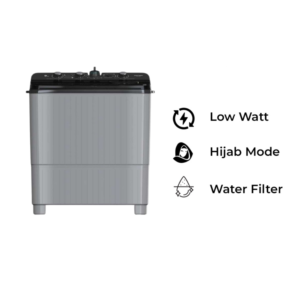 POLYTRON MESIN CUCI PWM 7081 7 KG 2 TABUNG HIJAB MODE LOW WATT RESMI