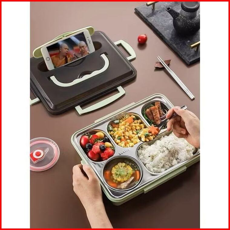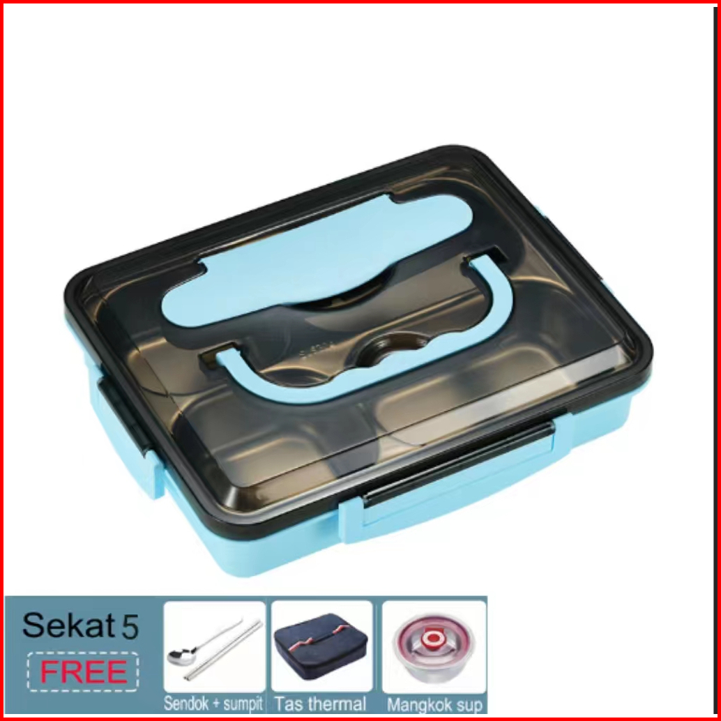 Lunch Box Kotak Makan Lengkap Dengan Tas Dan Alat Makan Kotak Bekal Berkualitas Stainless Steel Tahan Panas Dan Anti Tum