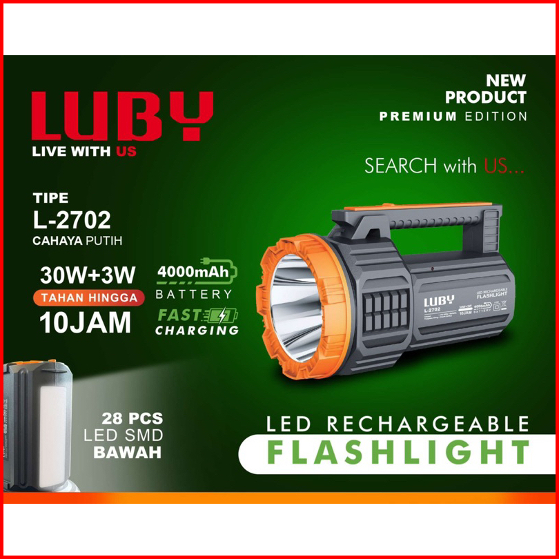 Senter Luby Emergency Led L-2700 L-2701 L-2702 Led Rechargergeable Flashlight