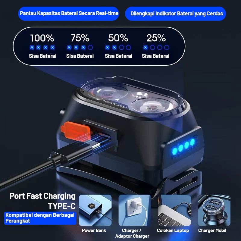 ONEPRO TX-30 SENTER KEPALA /LAMPU SENTER KEPALA/BATERAI 1000MAH 13W SENTER SUPER TERANG