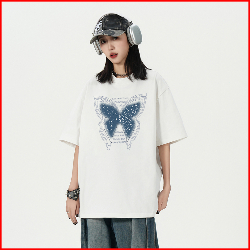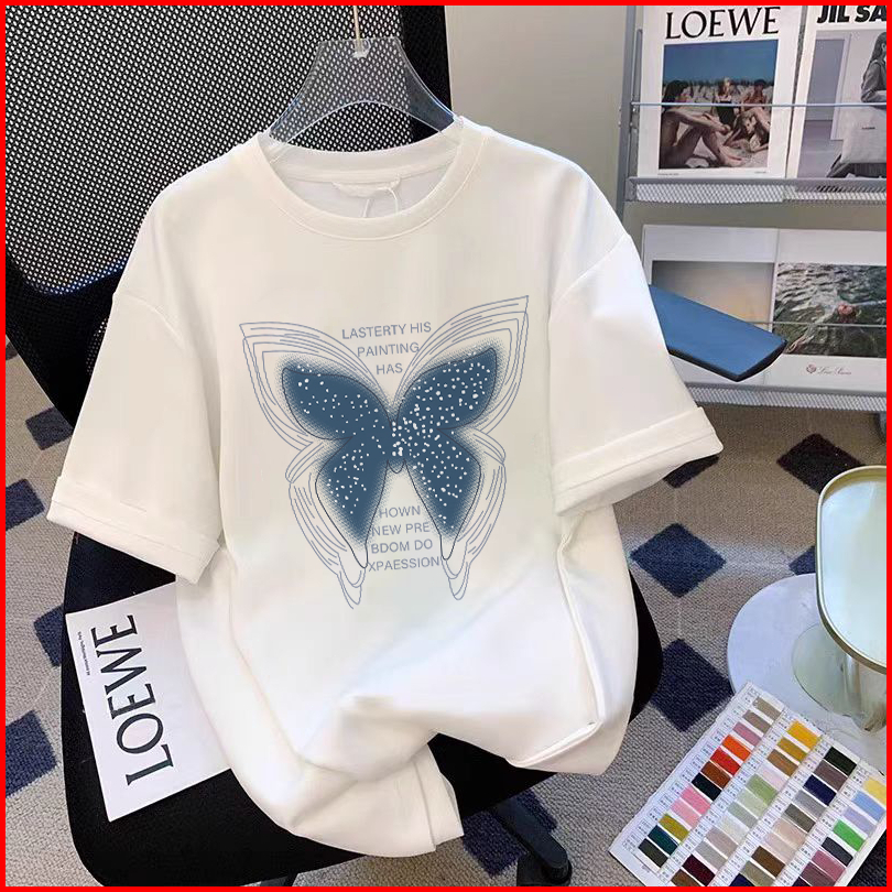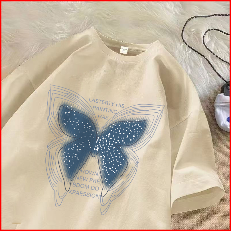 Kaos Wanita Katun Combed - Dasi Kupu-kupu Printed - Oversize T-shirt Import Premium