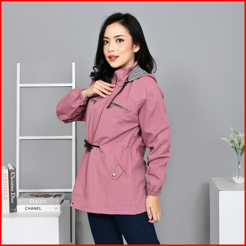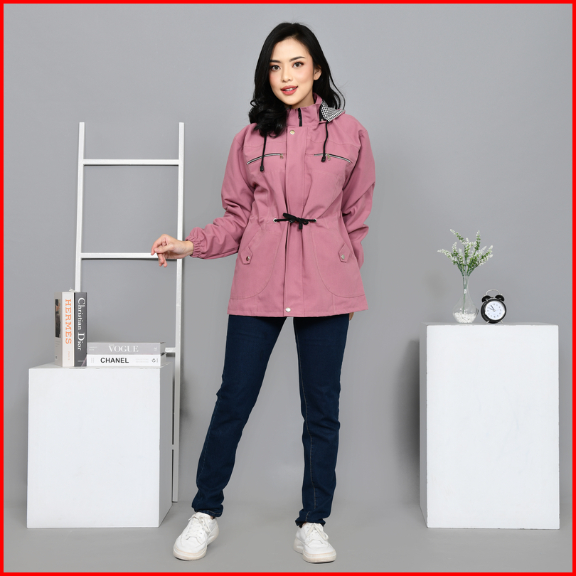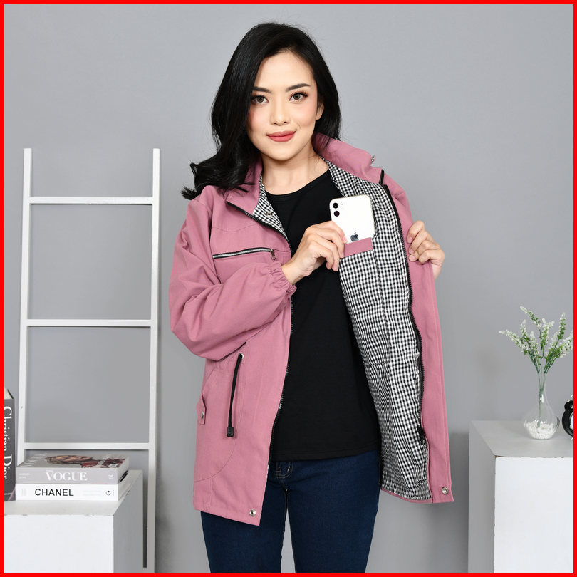 Jaket Parka Wanita Korean Style Bolak Balik Jumbo Warna Pink Dusty Ukuran M Sampai 4xl
