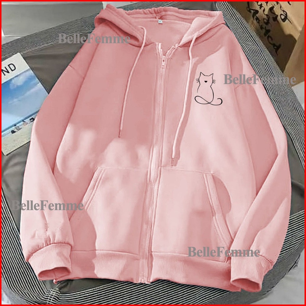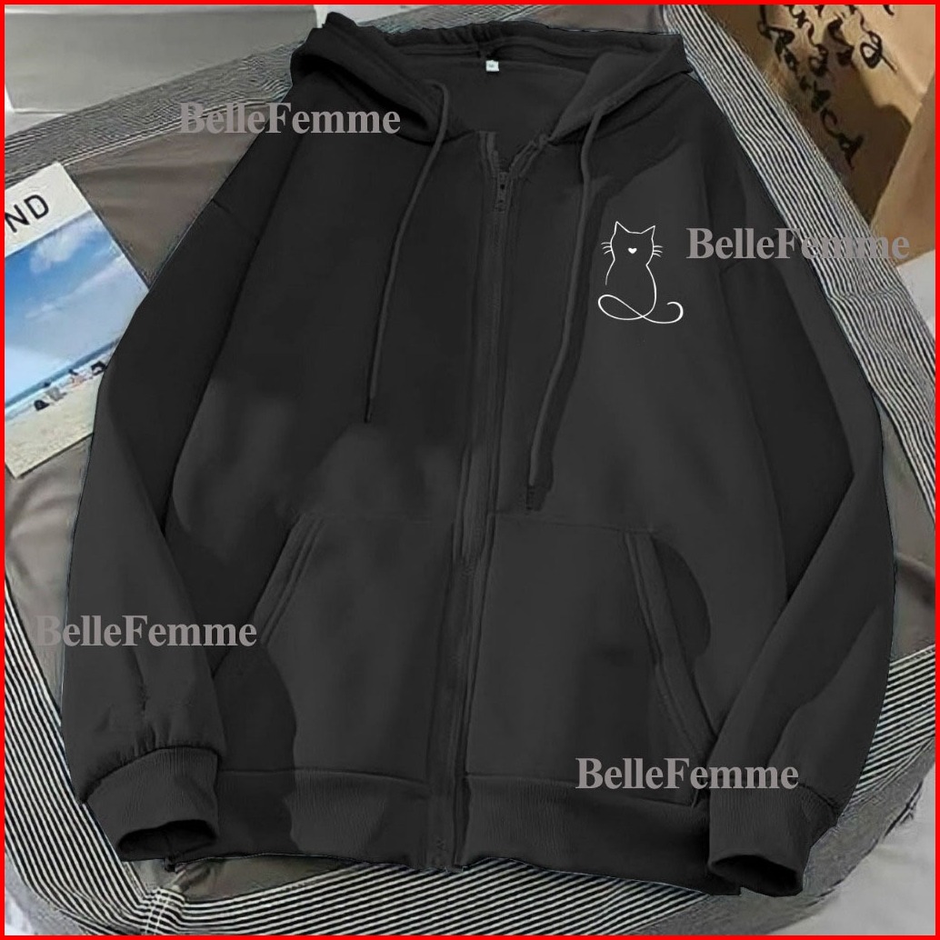 Hoodie Zipper Sweater Garis Kucing Resleting Pria Wanita Size L Xl Xxl 3xl 4xl Bigsize Zipper Wanita Kekinian Oversize B