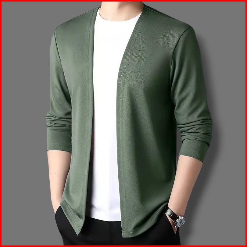 Kaos Lengan Panjang Cardigan V-neck Pakaian Kasual Pria Jahitan Mode Dua Badan Aktif Cowok Pull Over Atasan Kaus Rajutan