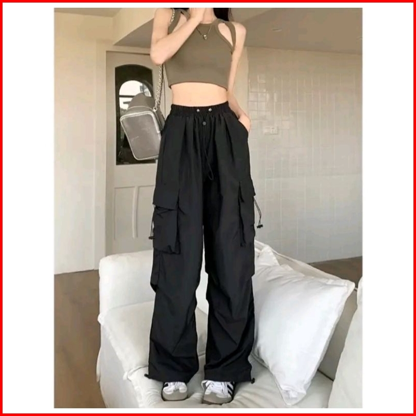 Celana Kulot Cargo Serut Celana Anti Kusut - Celana Kulot Wanita - Celana Cargo Korean Style Murah Terlaris
