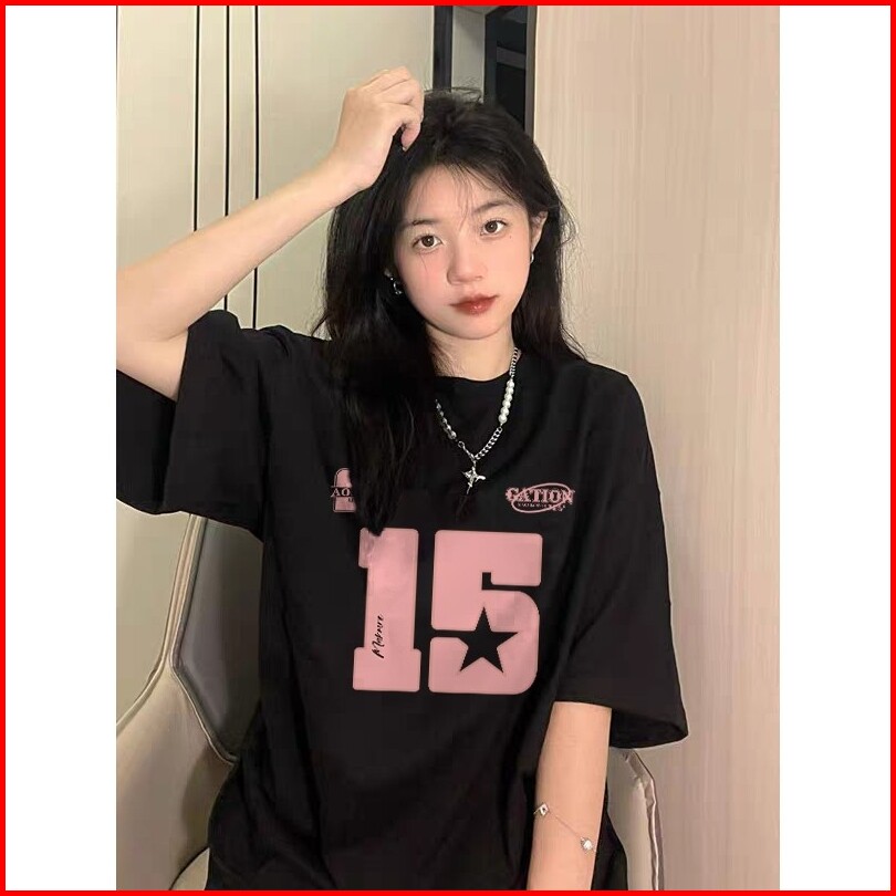 Jessica Baju Wanita Kaos Motif Angka 15 Warna Pink Baju Kaos Oversize Wanita Korean 100 Cotton Kaos Wanita Kaos Oversize