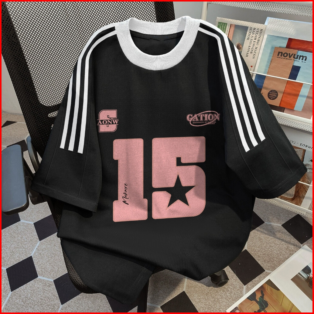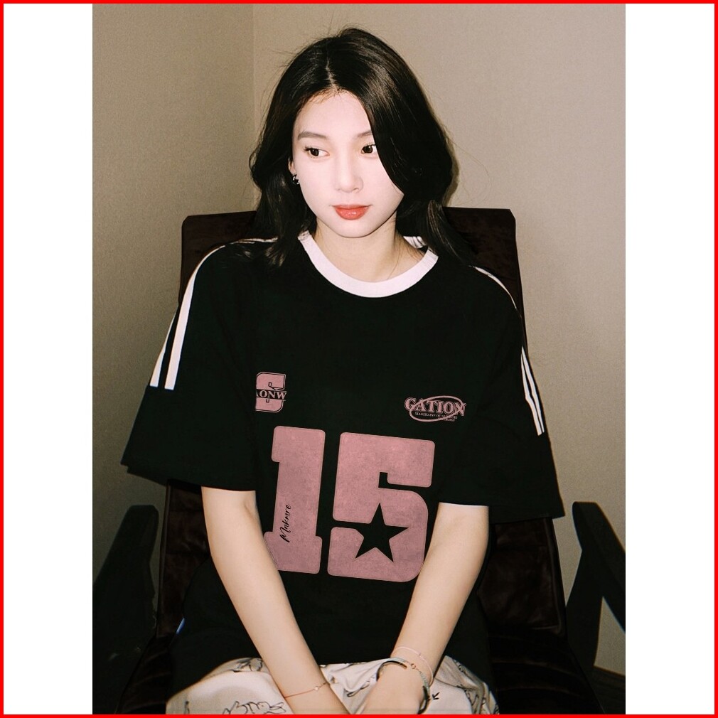 Jessica Baju Wanita Putih Black Kaos Premium Lengan Pendek Oversize Kaos Merah Muda Dengan Tiga Garis Dan Nomor 15 Atasa