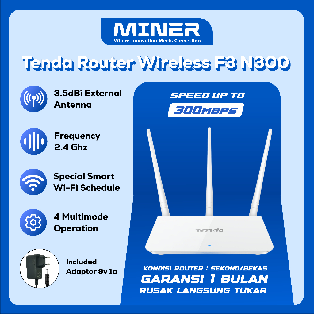 Rer Wireless Tenda F3 N300 3 Antena Access Point 300 Mbps 2.4Ghz
