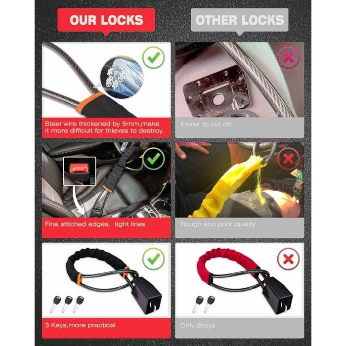 Gembok Pengaman Stir Mobil Kunci Pengaman Model Baru Seat Belt Gembok Kunci Murah