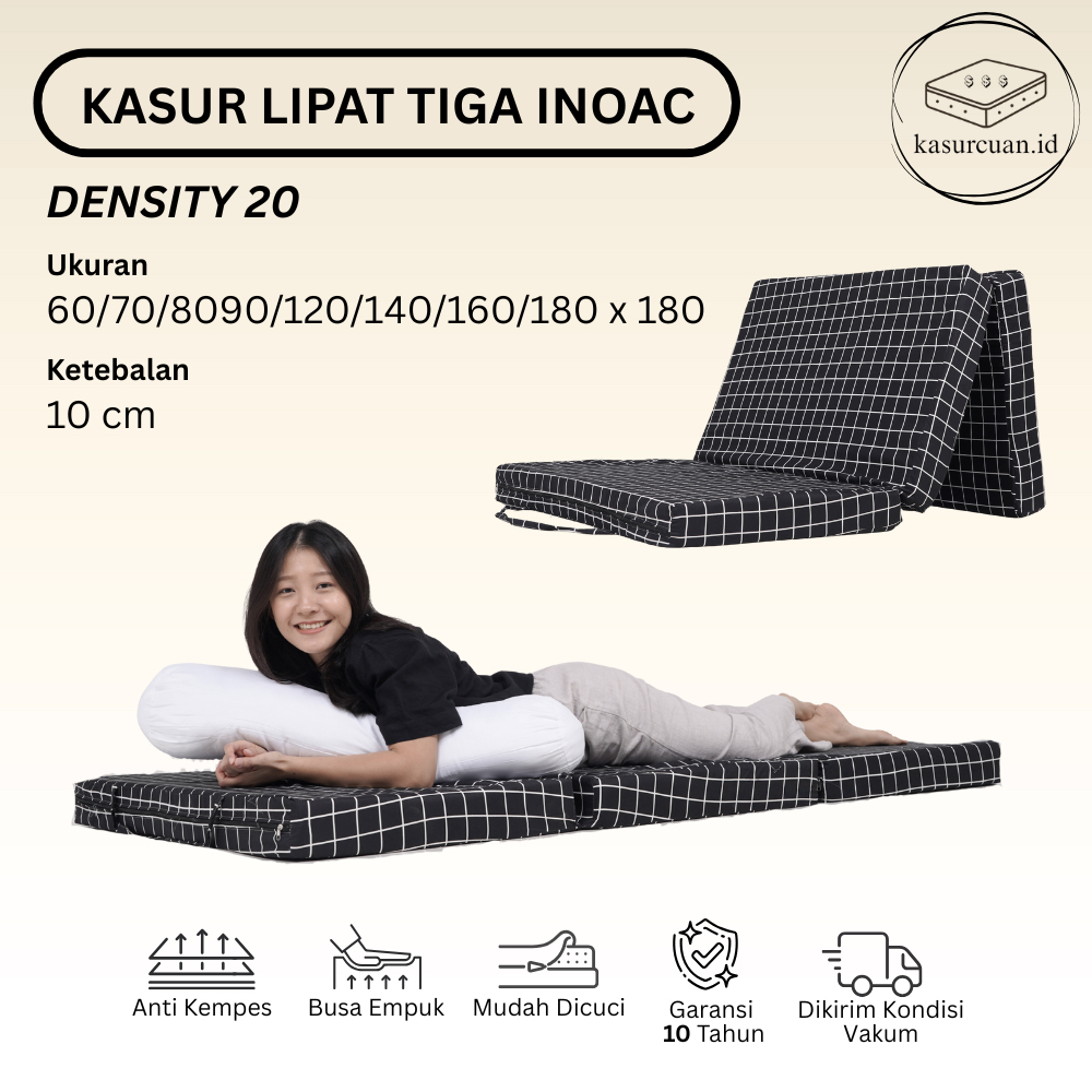 BESTSELLER Trifold Mattress / Kasur Busa Lantai Lipat 3 Asli INOAC Density 20 Travel Bed Tebal 10cm 10 Tahun