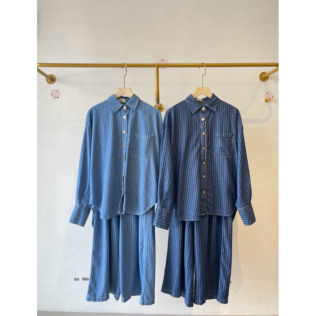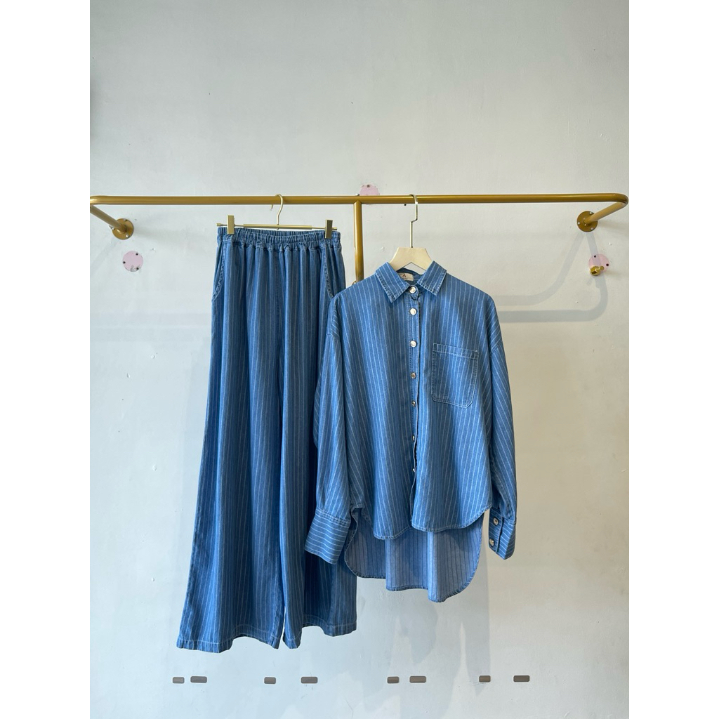 Lyora Setelan Celana Jeans Salur Wanita Nyaman