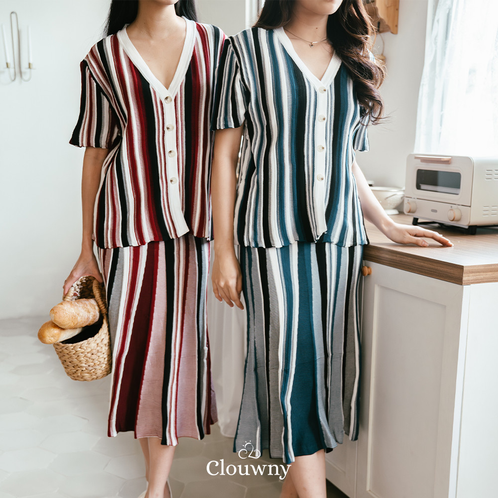 Clouwny Marcell Knit Set Setelan Lengan Pendek Premium Knit Korean Look Fit to XXL