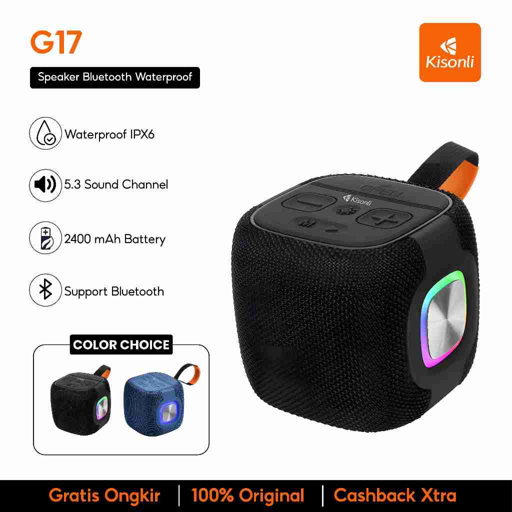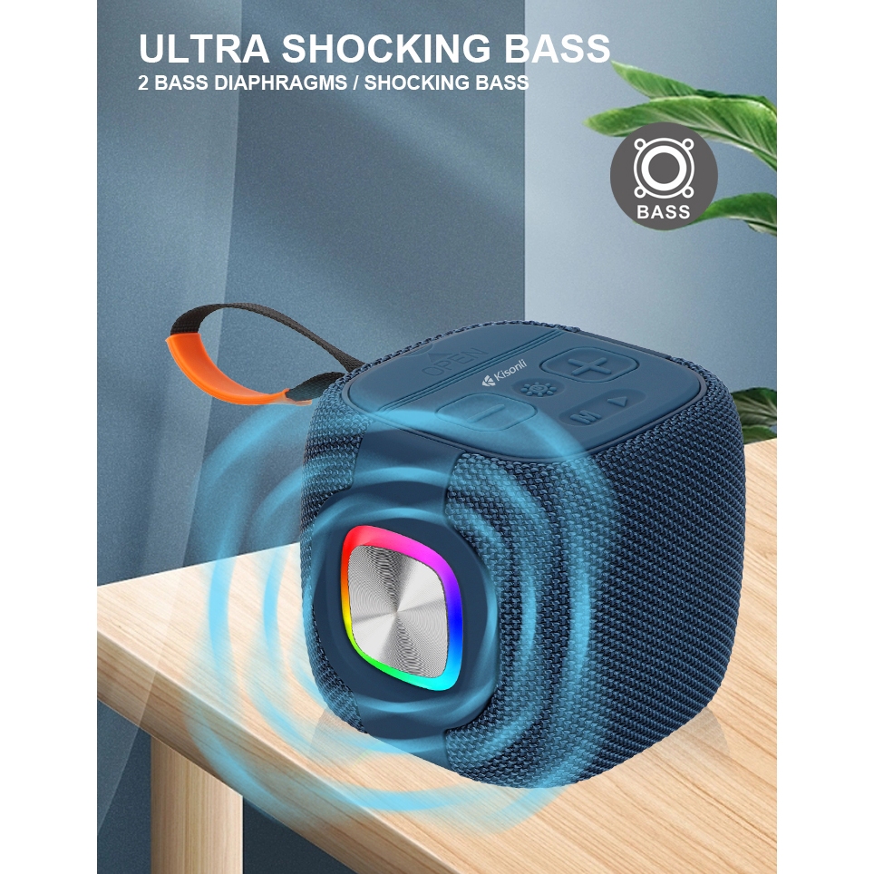 KISONLI Speaker Bluetooth G17 TWS Waterproof IPX6 RGB Stereo Bass