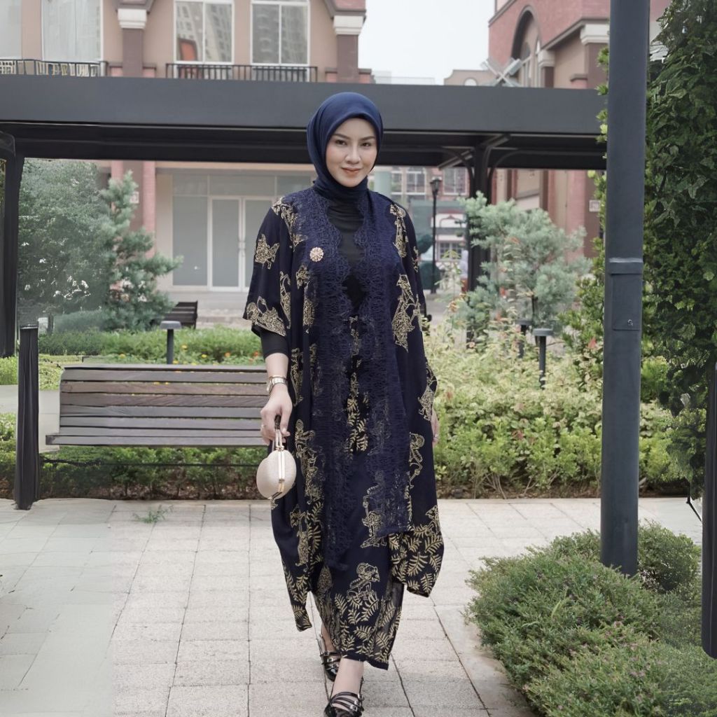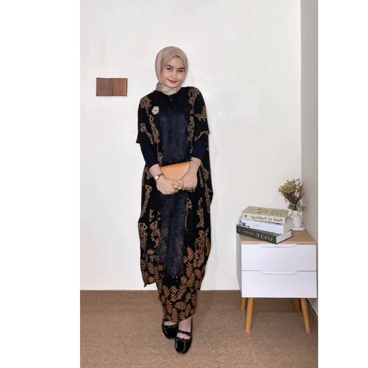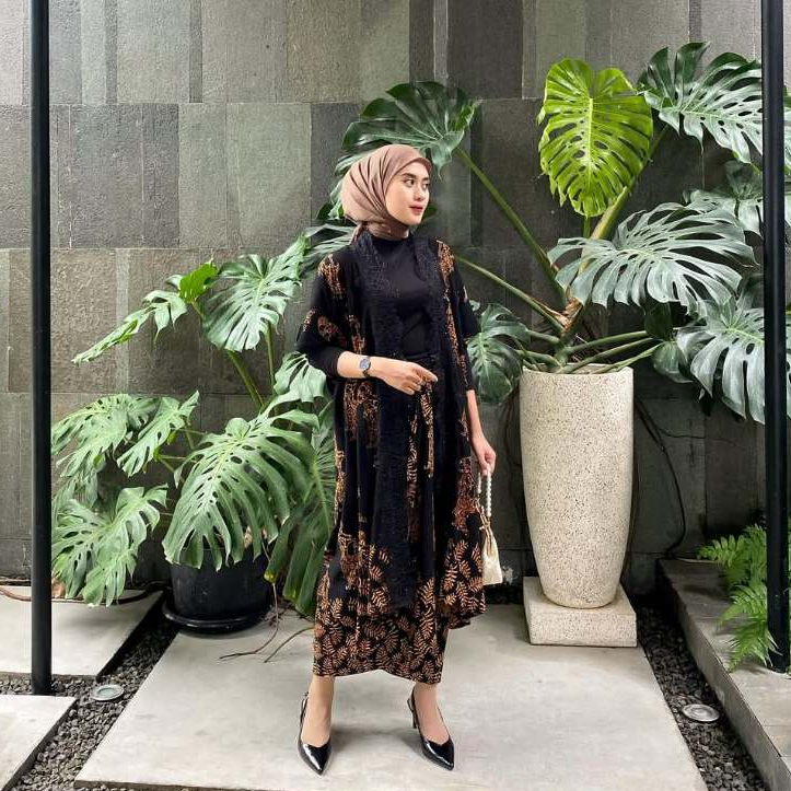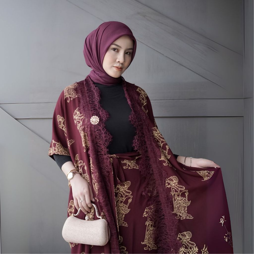 KINNAS BATIK ANDIN One Set Outer Lace dan Rok Lilit Batik Wayang Setelan Wanita Loose FIt Formal 2in1 OneSet Fashion Muslimah