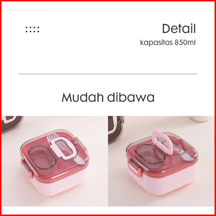 Paket 3 In 1 Kotak Makan Set Sendok Garpu Tas Bekal Thermal Insulation Botol Minum 500ml Anti Tumpah