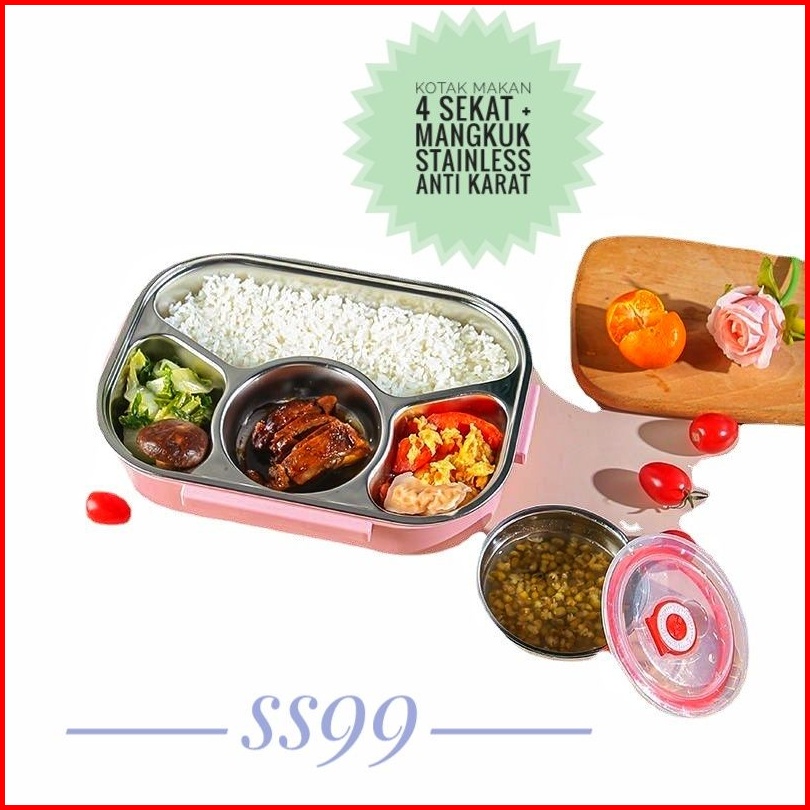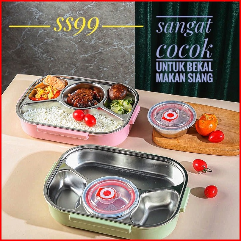 Kotak Bento Bekal Makan Stainless Steel 304 Tempat Makan Anak Dewasa Lunch Box