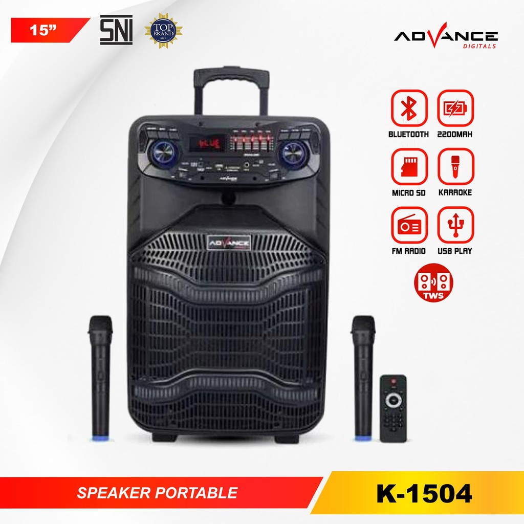 Advance K-1504 Speaker Bluetooth Portbale 15" Xtra Bass Power Sound 2 Mic Wireless Garansi 1 Tahun