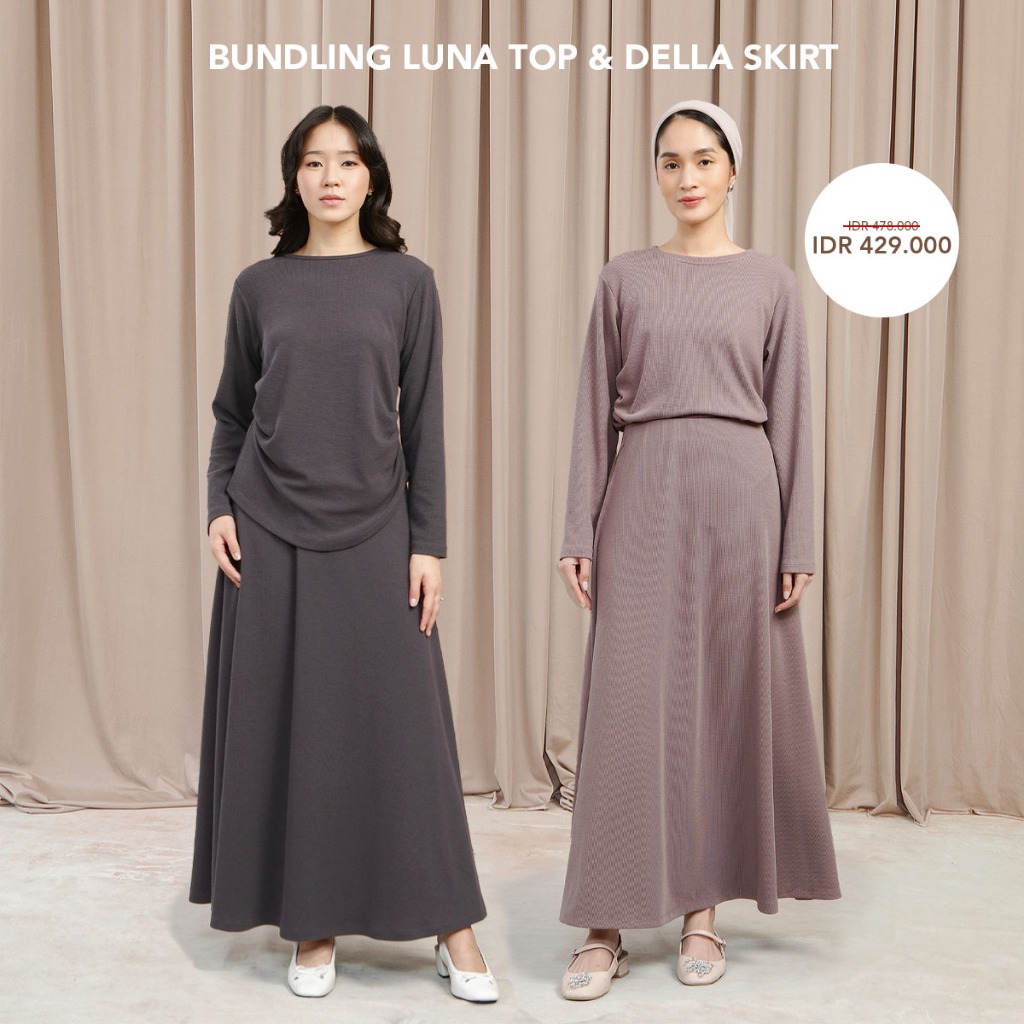 Bundling Hemat Luna Top dan Della Skirt - One Set Blouse dan Rok Knit