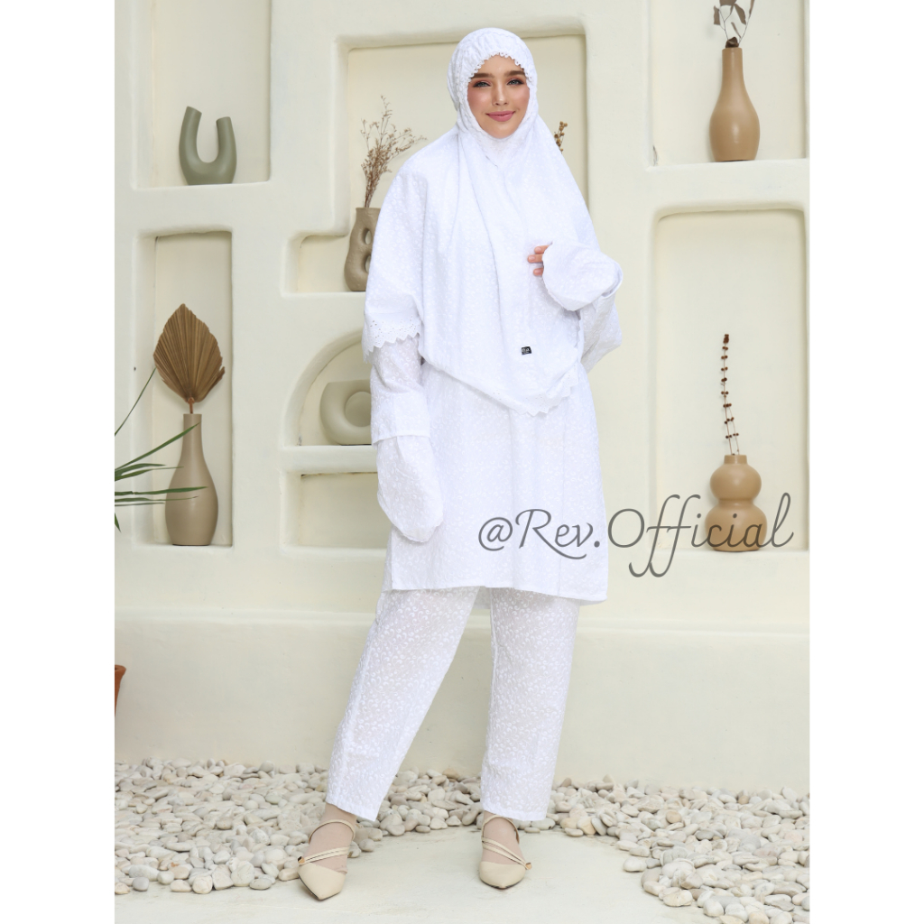 Setelan Lengkap Haji Umroh Wanita Bahan Katun Full Bordir Adem Dan Mewah