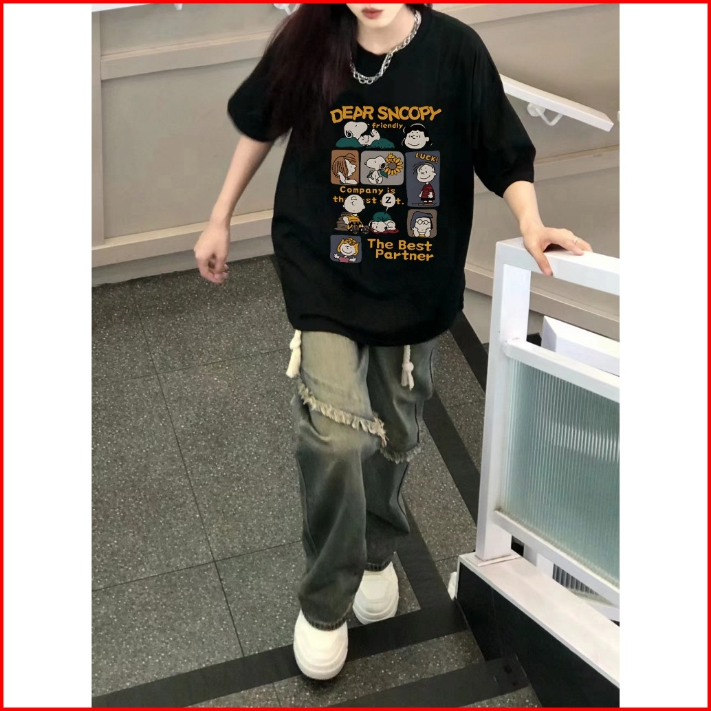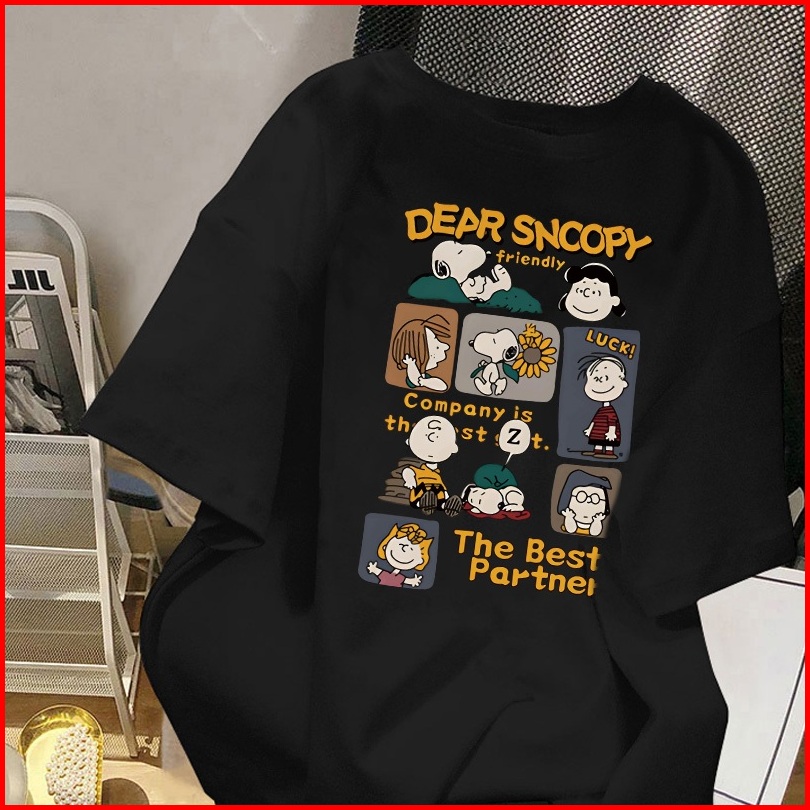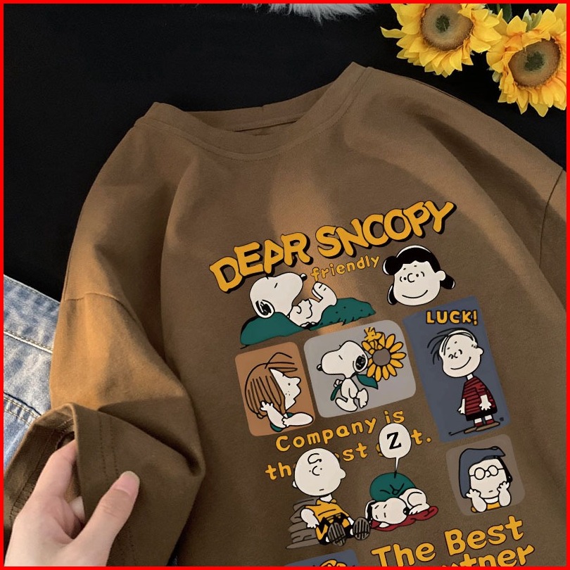 Po Floret T Shirt Oversize Lengan Pendek Kaos Dear Snoopy Katun Murni Japanese Style Wanita Top