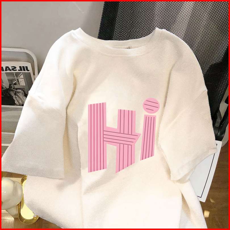 Po Floret T Shirt Oversize Lengan Pendek Kaos Hi Katun Murni Korean Style Wanita Top