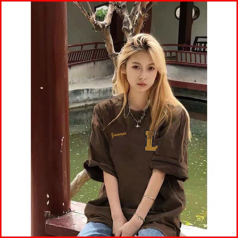 Po Floret T Shirt Oversize Lengan Pendek Kaos Street Retro Numbers Katun Murni Retro Style Wanita Top
