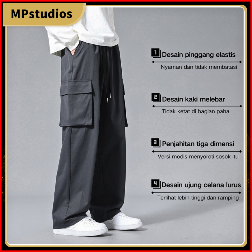 Celana Cargo Pria Oversize Bahan Keren Wide Leg Pants Korean Style Celana Cargo Outdoor-g88