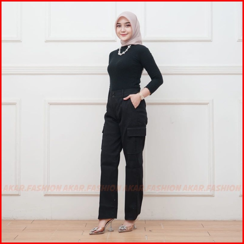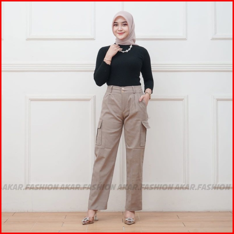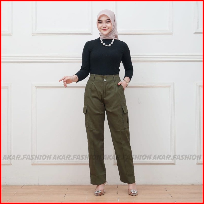 Celana Kulot Cargo Wanita High Waist Premium Twill Combed Loose Korean Style Terbaru
