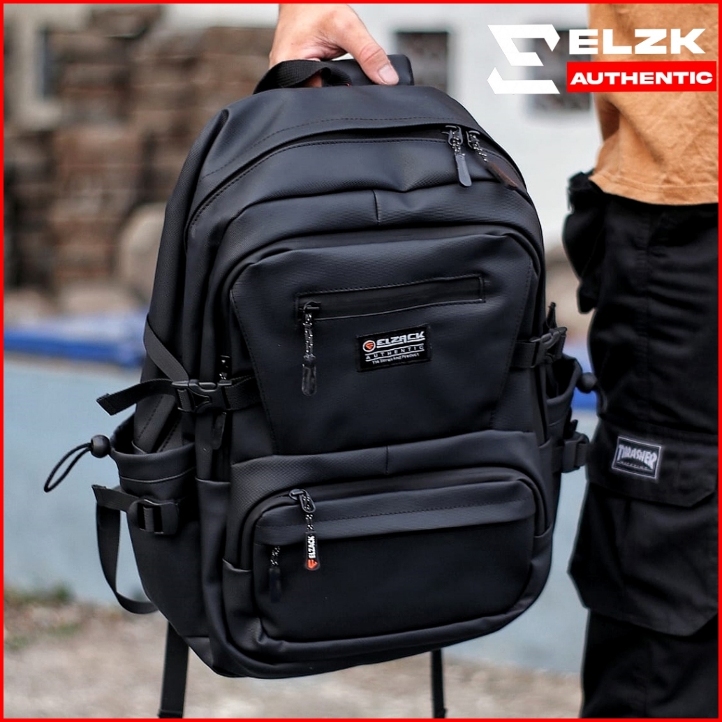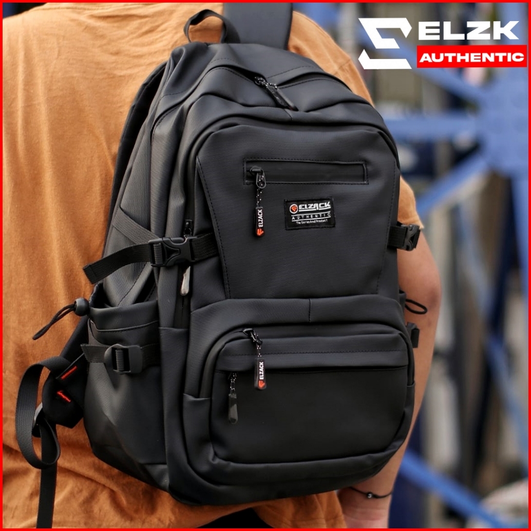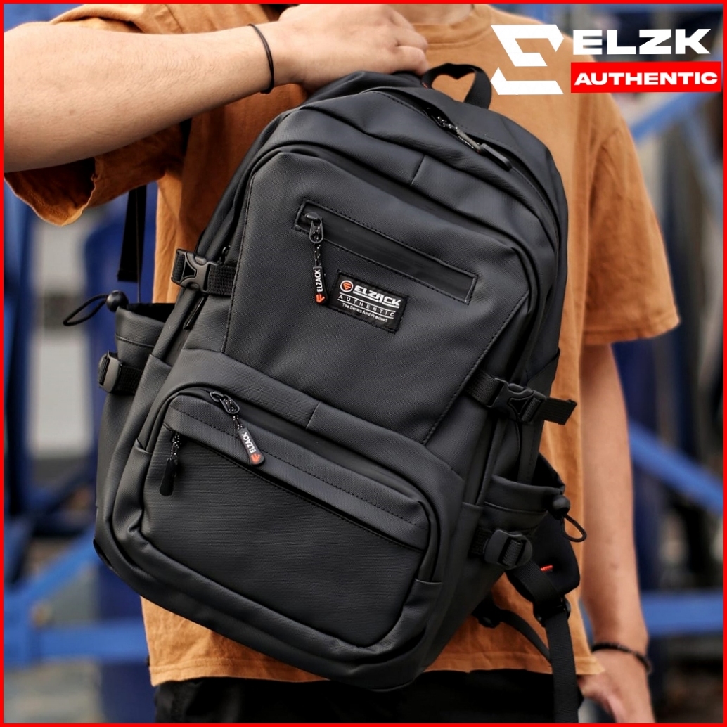 Elzck Hubner Tas Ransel Pria Hitam Backpack Tas Kerja Kuliah Sekoah Trendy Original