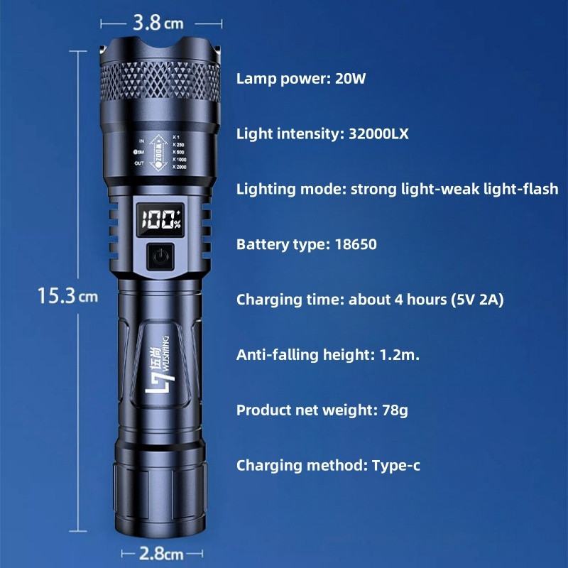300W SENTER CAS POLICE SWAT SENTER SENTER LED SUPER TERANG PORTABEL ZOOM RECHARGEABLE IPX8 TAHAN AIR 18650 BATERAI TAHAN LAMA